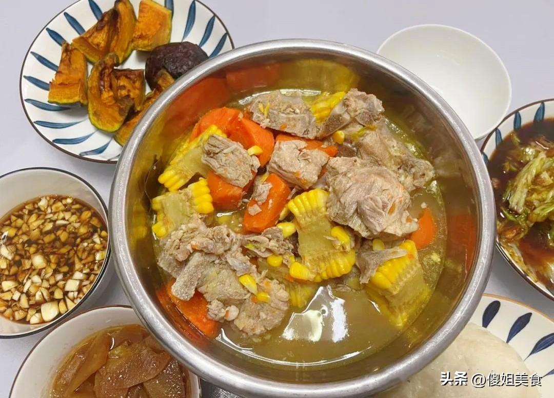 【清燉排骨】所需食材:排骨一斤半(我買的是肋排,肉多一些,孩子愛喫)、胡蘿蔔一根、玉米一根、大棗五六顆、蔥段、料酒、鹽適量
