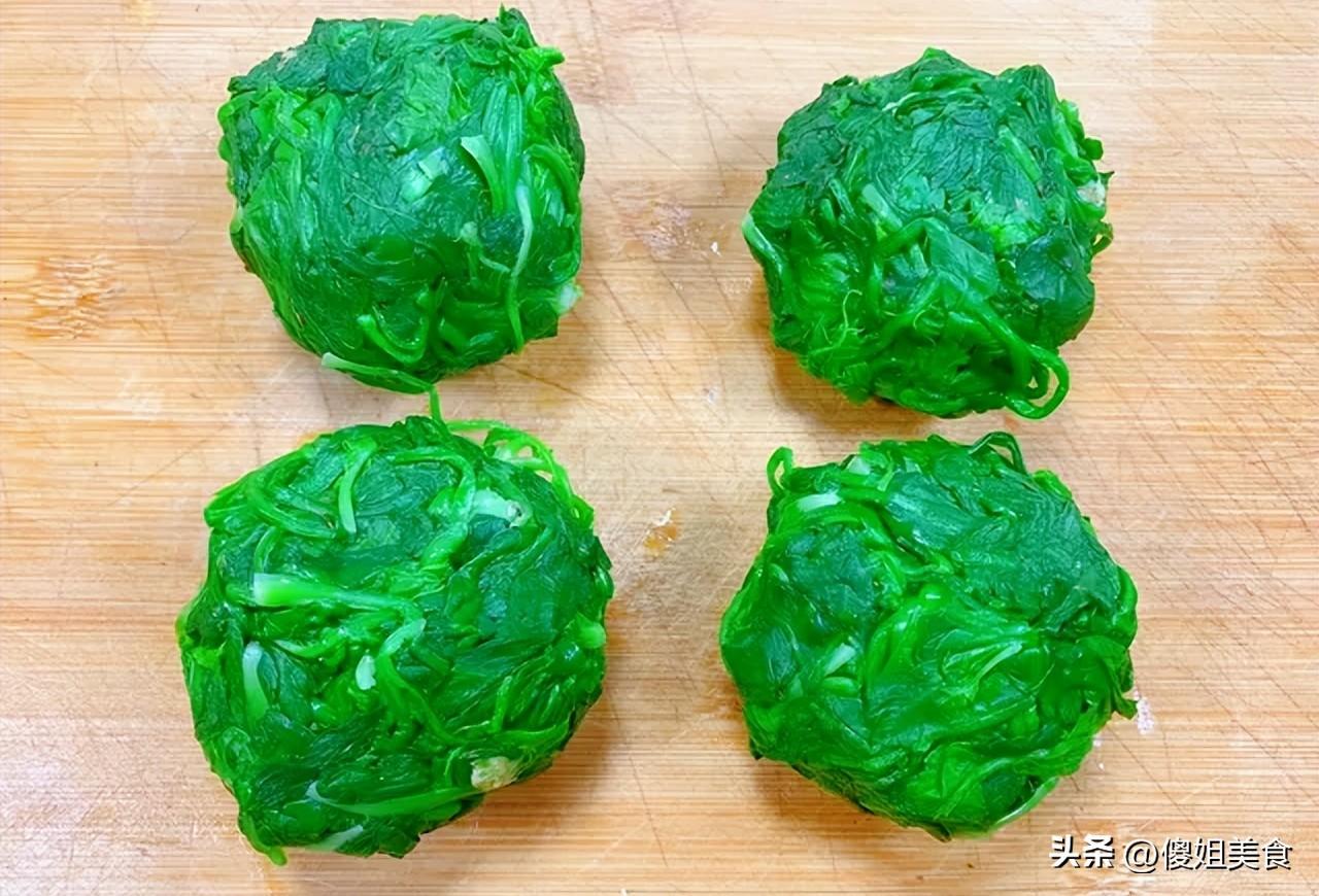 【詳細做法】1、取出冷凍的薺菜,不用特意解凍,直接用水一衝,稍微化一化就能切了,切的時候,那股特有的清香就冒出來了,清新中帶着些許甜味,真是冬天裏難得的味道。