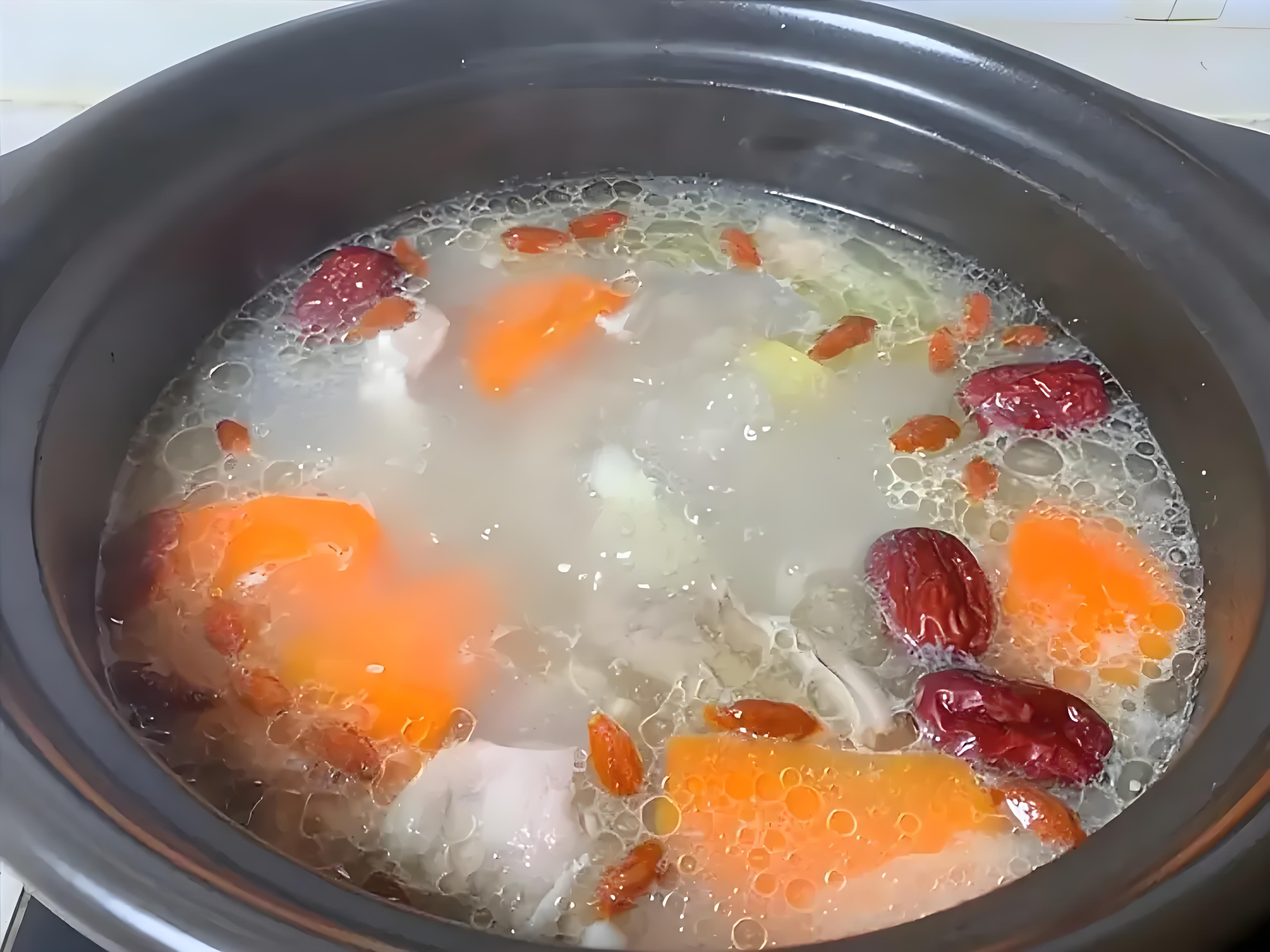 這實在是一道非常“聰明”的冬季養生湯。豬肚作爲“主角”,提供了優質的蛋白質和滋補基礎;山藥和蓮子平補脾胃,增強養胃之效;紅棗和枸杞負責調和味道,增添自然甘甜,同時補氣血;胡蘿蔔則增加了清甜口感和豐富的維生素;畫龍點睛的白胡椒,瞬間驅走所有寒氣。