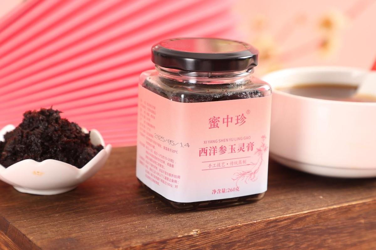 拆開木蓋,一股淡奶+參香的混合味先鑽進鼻腔,膏體是流心琥珀色,舀一勺能拉出細膩金絲。它的西洋參來自加拿大安大略湖畔,那塊地冬天零下二十度,夏天晝夜溫差大,參農說“西洋參在這裏得先學會抗凍,才能攢足皁苷”。於是生長週期被拉長到5-8年,切片對着燈看,菊花紋一圈套一圈,送檢報告裏皁苷含量比普通參高60%,也就是說,同樣3克,別人補1格血條,它直接給你拉1.6格。