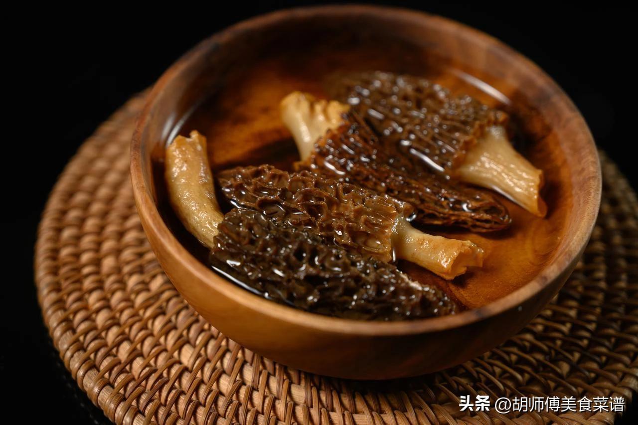 第一步:將羊肚菌放入溫水中浸泡3-5小時,直到羊肚菌完全泡脹,就可以將羊肚菌撈出,接着再用自來水將羊肚菌沖洗乾淨即可備用。
