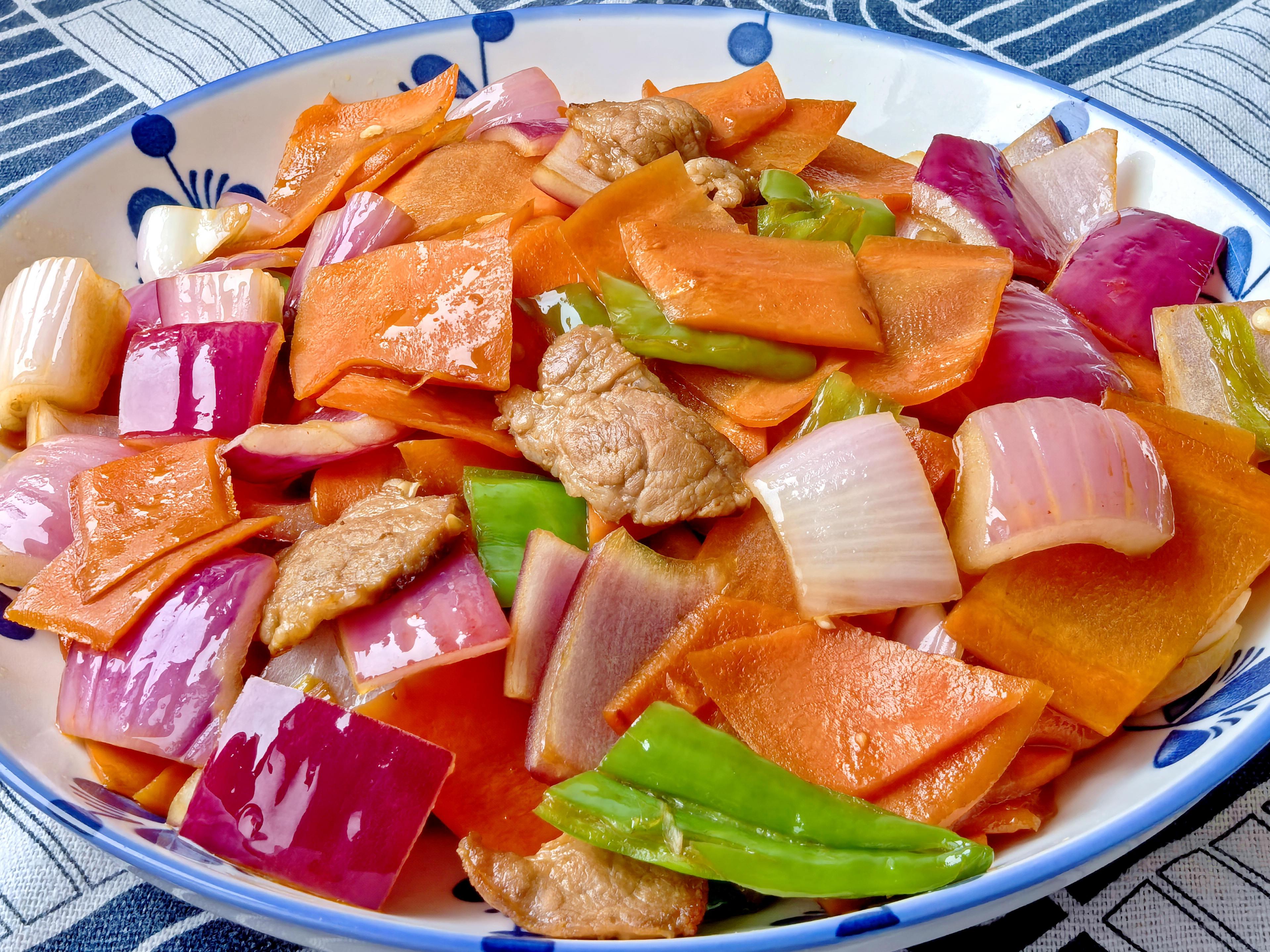 三、洋蔥;推薦食譜:洋蔥胡蘿蔔青椒炒肉