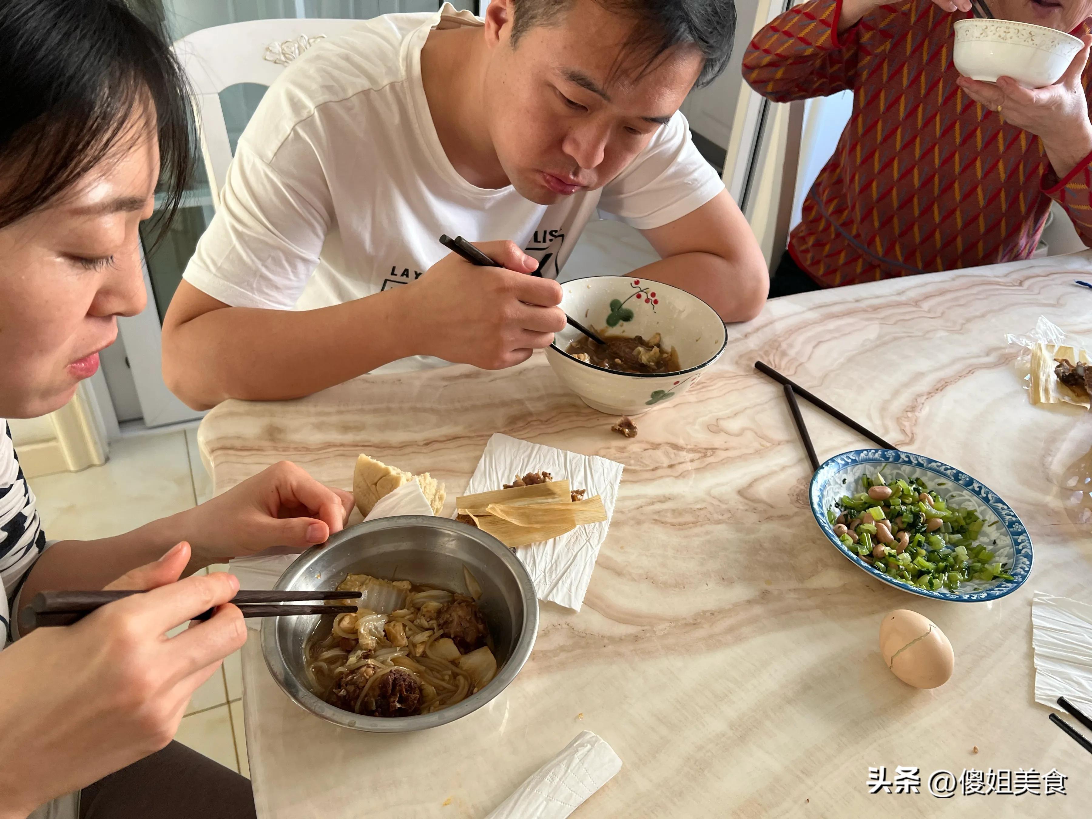 下午丈母孃從中醫那兒回來,一進門就說醫生給開了藥方,還教了幾個動作。她坐在沙發上,一邊揉腰一邊說:“早上那麪條真不錯,湯濃面滑,我在家都懶得燉大鵝,太費功夫。”