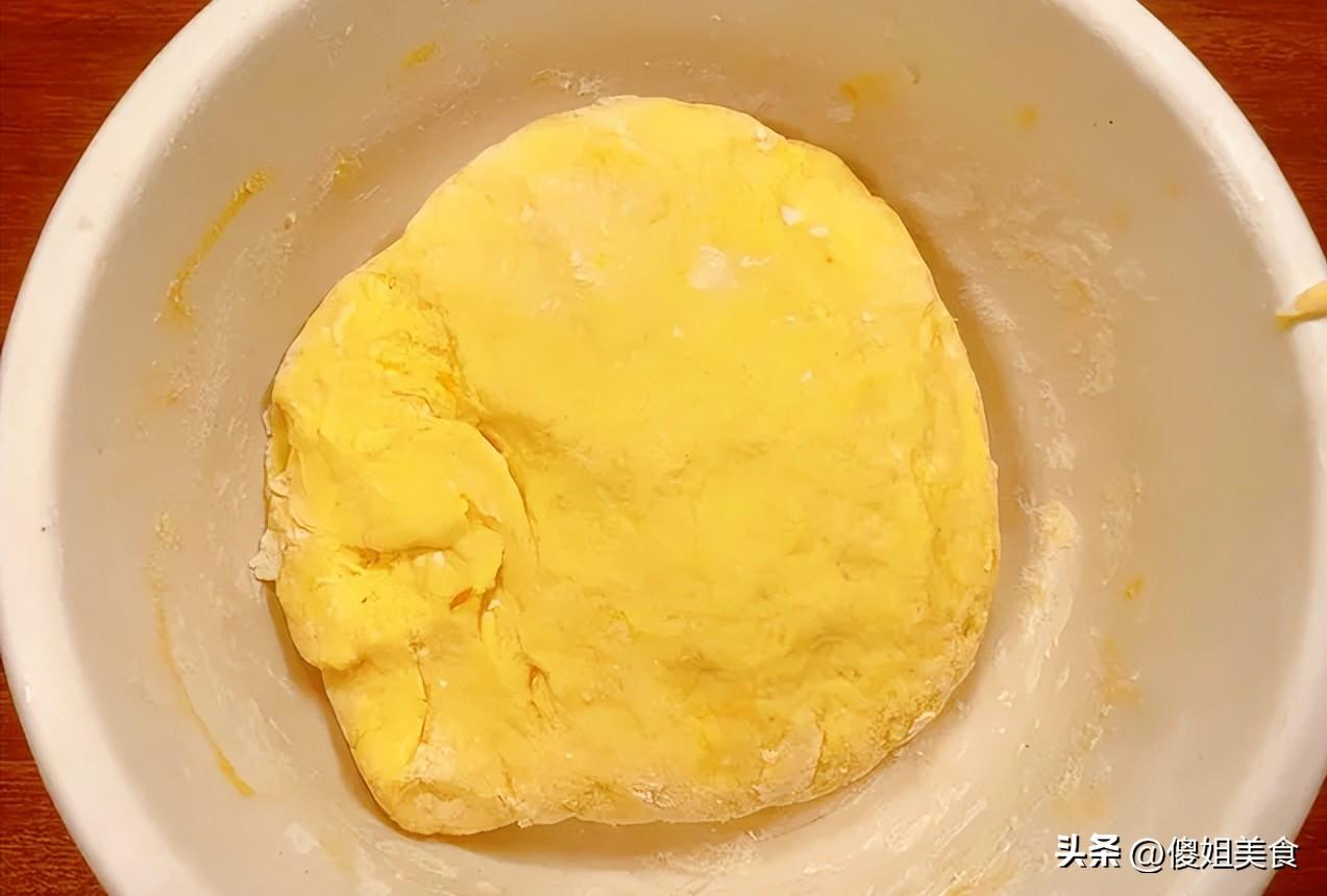 揉好的麪糰是漂亮的橘紅色,摸着軟乎乎的,帶着柿子的清香,把它蓋上保鮮膜,醒個十來分鐘。