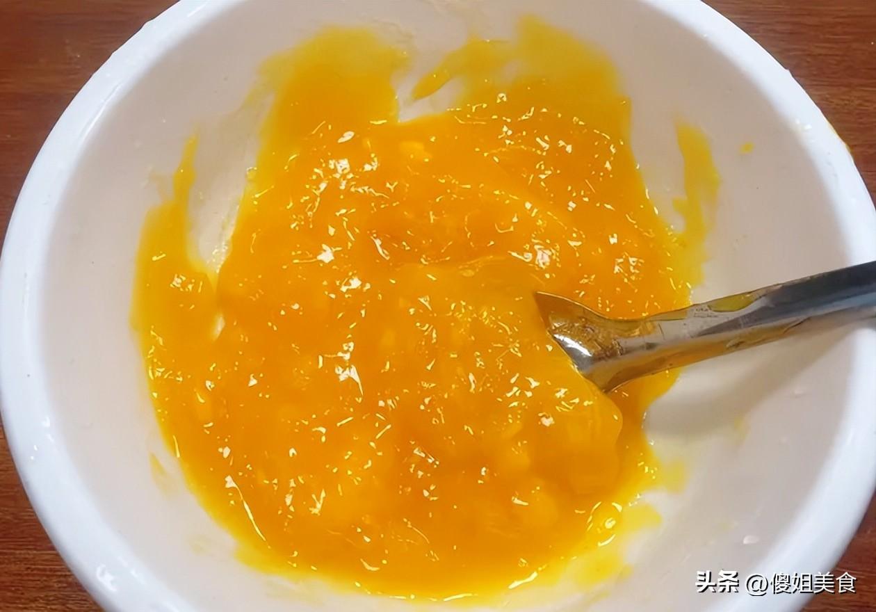 做法:1、先把柿子洗乾淨,剝了皮,軟柿子特別好剝,輕輕一撕就下來了。把果肉放進碗裏,用勺子壓成泥,不用太細,留點小顆粒,喫起來更有口感。