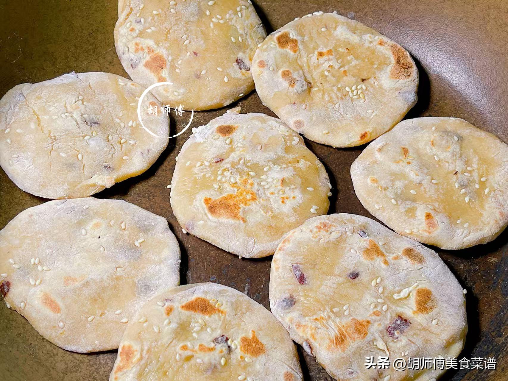第八步:準備一個平底鍋,將鍋燒熱後,將按壓好的餅放入鍋中,大火將一面煎成淺淺的黃色後翻一面,接着再把另一面也煎成淺淺的黃色即可起鍋食用。