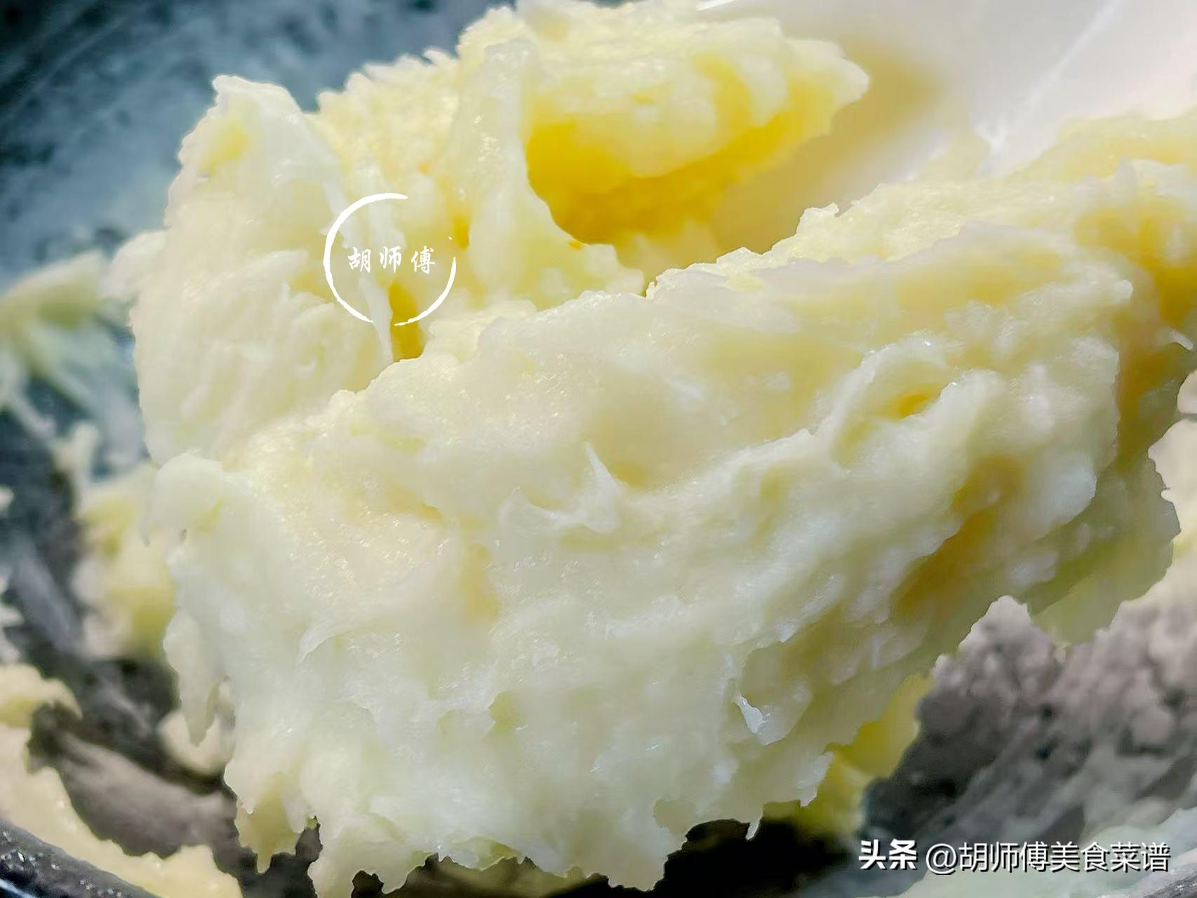 第三步:準備一個大勺子,然後反覆的按壓山藥,直到將山藥全部都按成泥,山藥按的越好,做好的山藥餅也就更好喫。