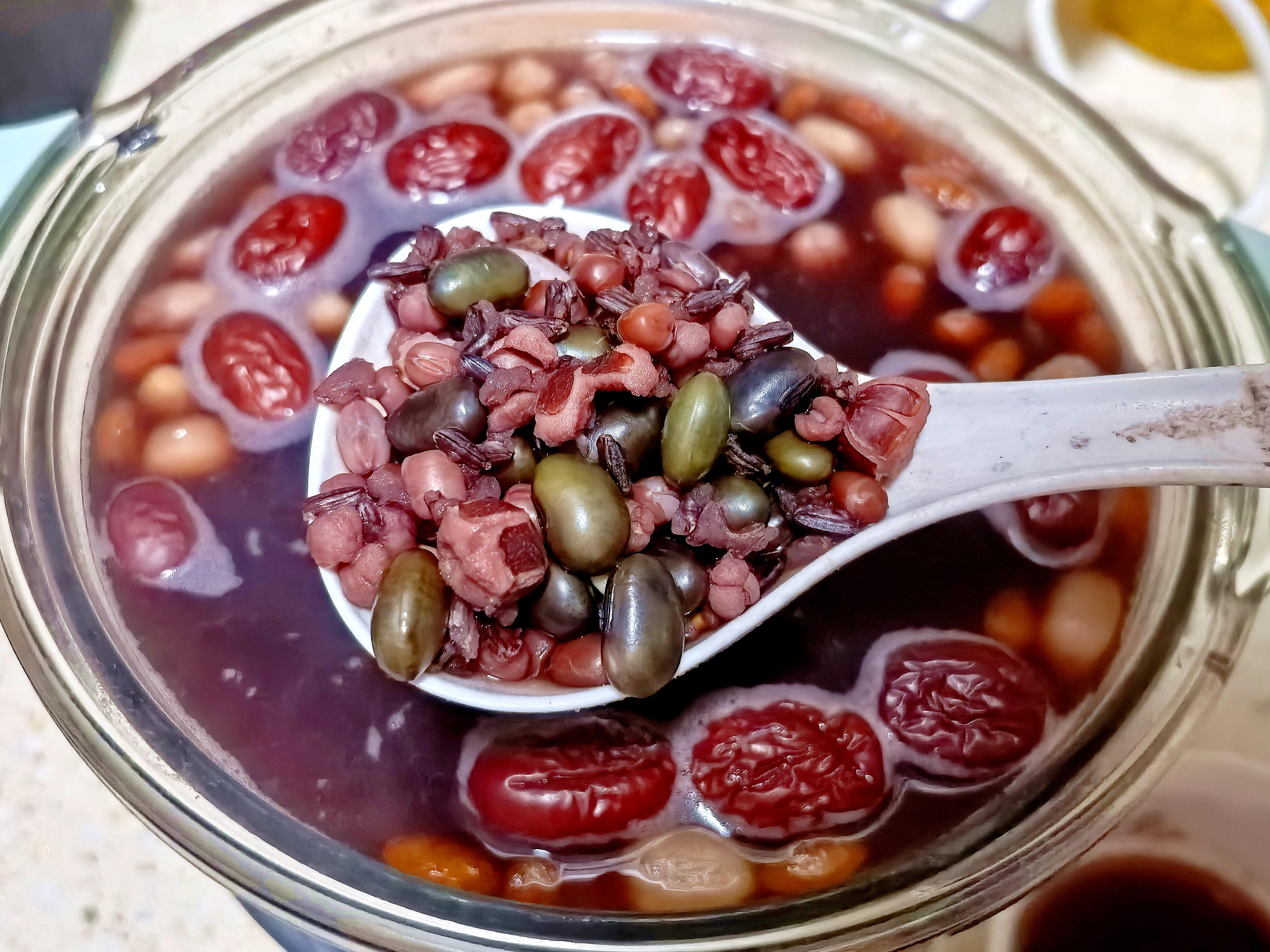 1. 浸泡:紅小豆、黑豆和百合比較難煮,提前用清水浸泡2小時以上(如果能泡一夜更好)。