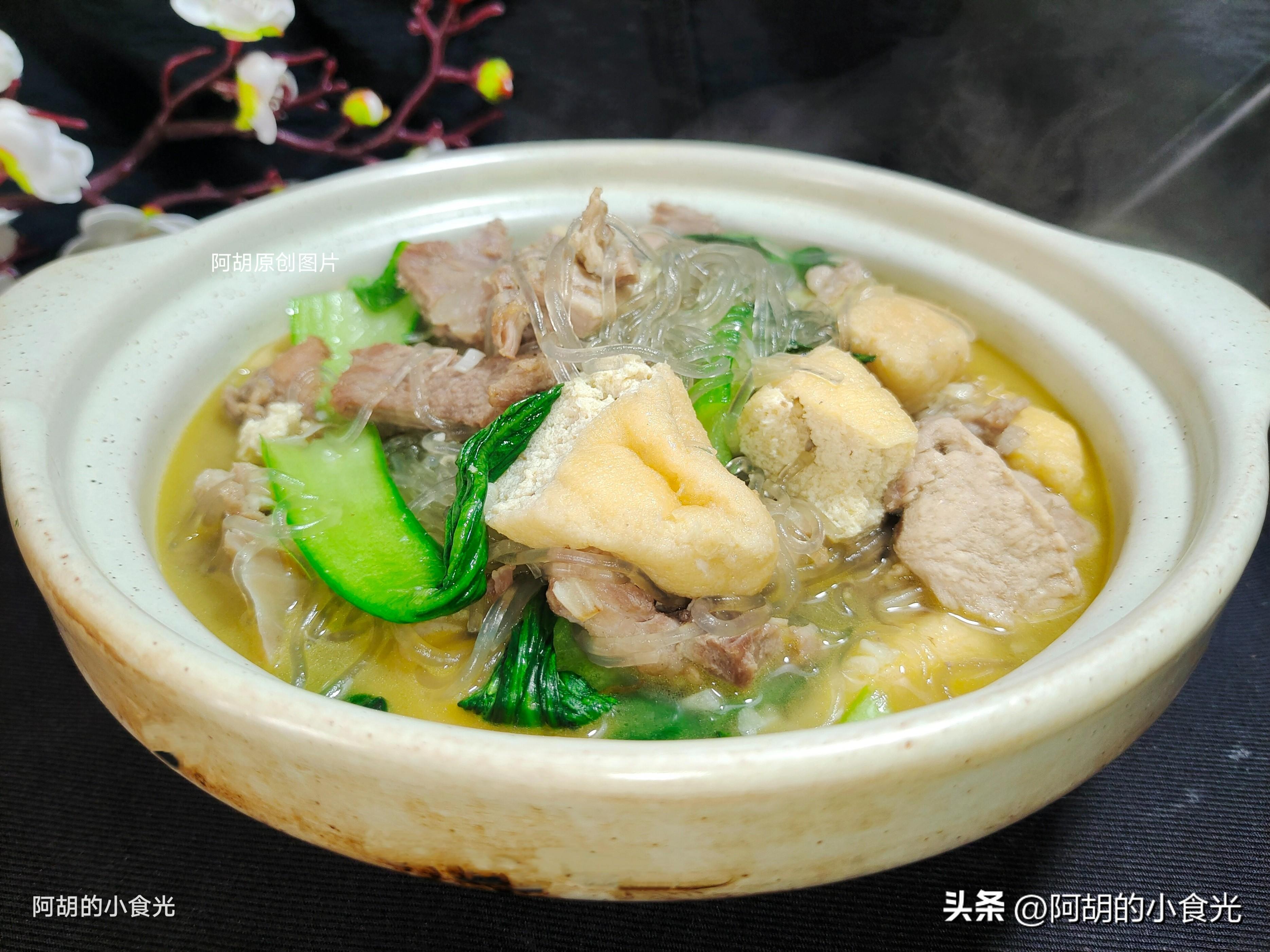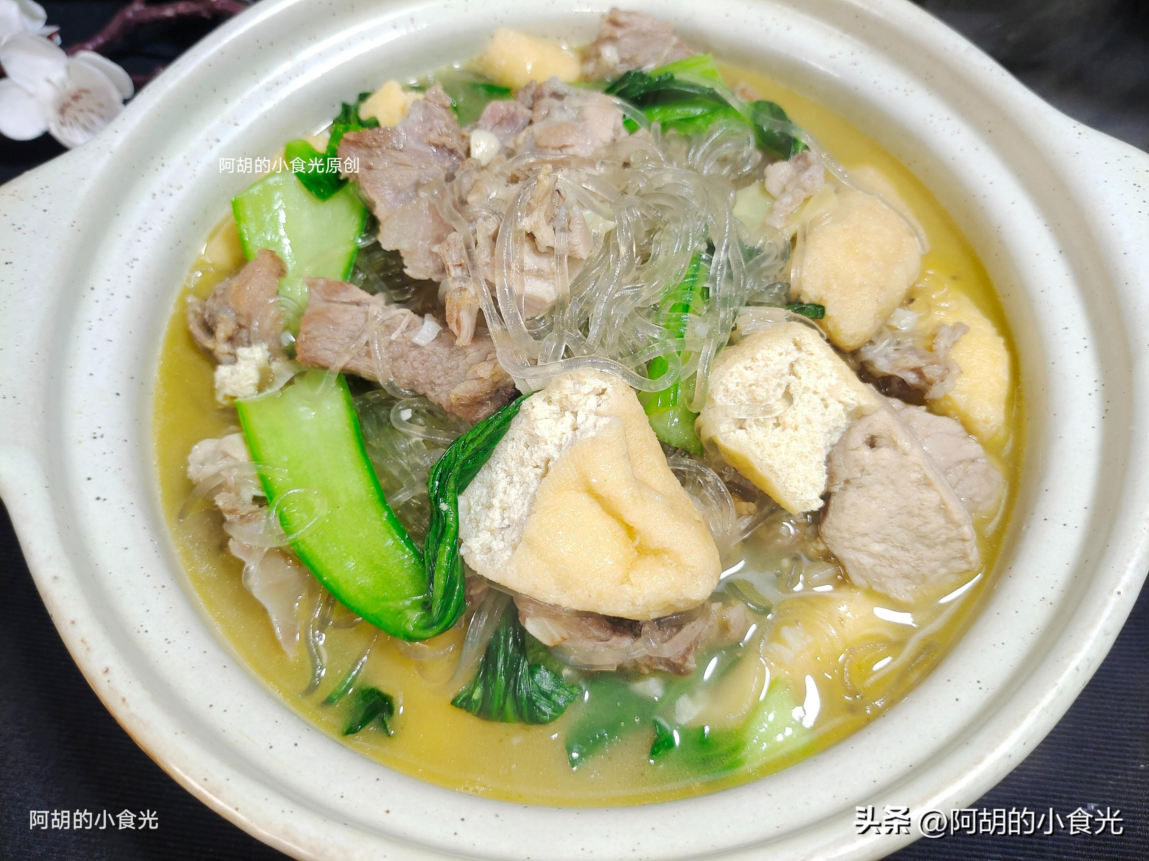 我是阿胡的小食光,一個喜歡研究把普通食材做出更多花樣美食的饕餮小食客!天冷的時候不妨來這一鍋,拆骨肉、油豆腐、粉條和青菜的完美搭配,葷素搭配熱熱乎乎,開胃下飯太美味了,別錯過這個做法。如無特殊情況,我每天都會按時分享一道家常美食的做法,在此特別感謝您的每一個贊和“小紅心”,明天的內容依舊很精彩,敬請期待!