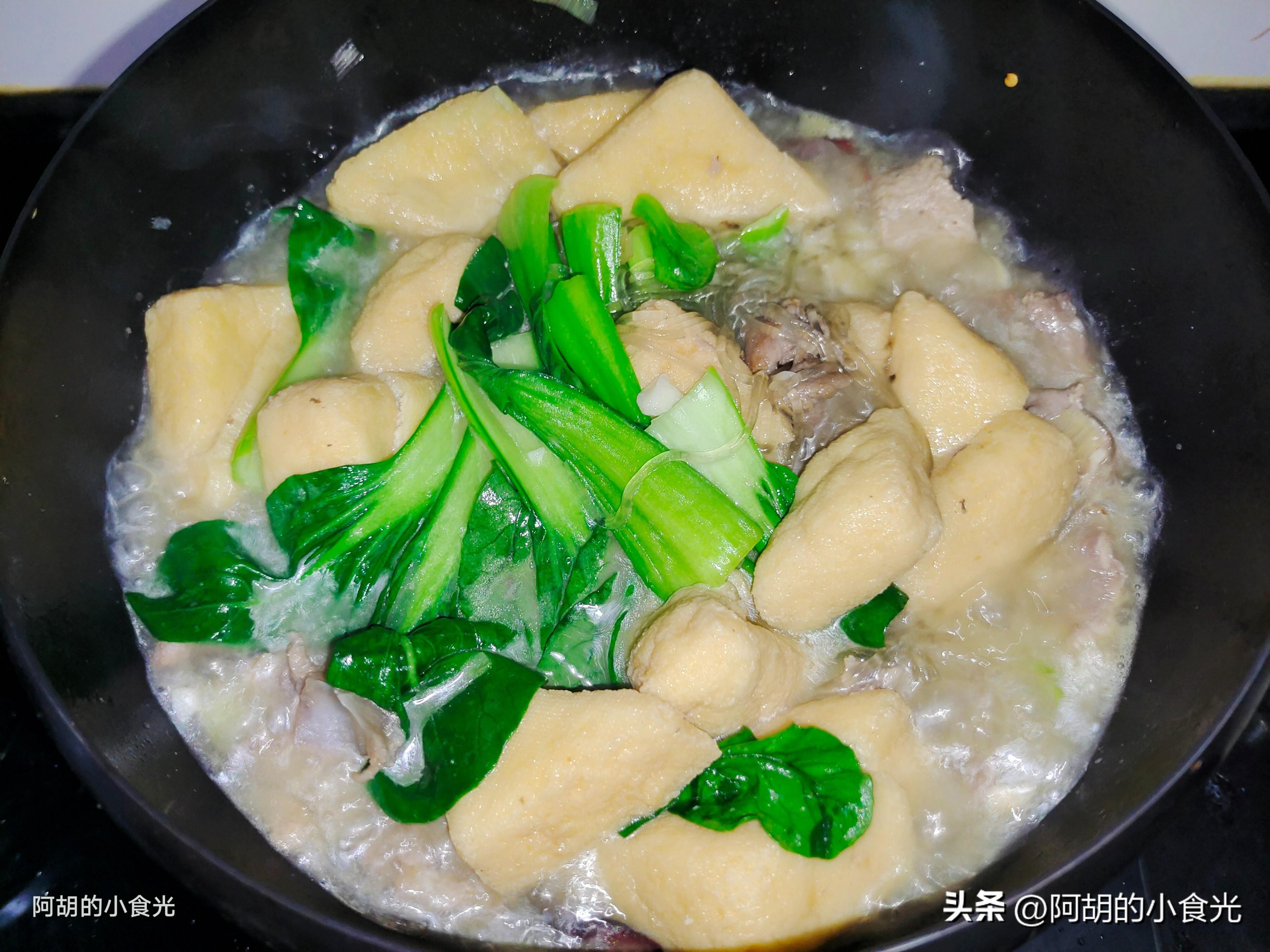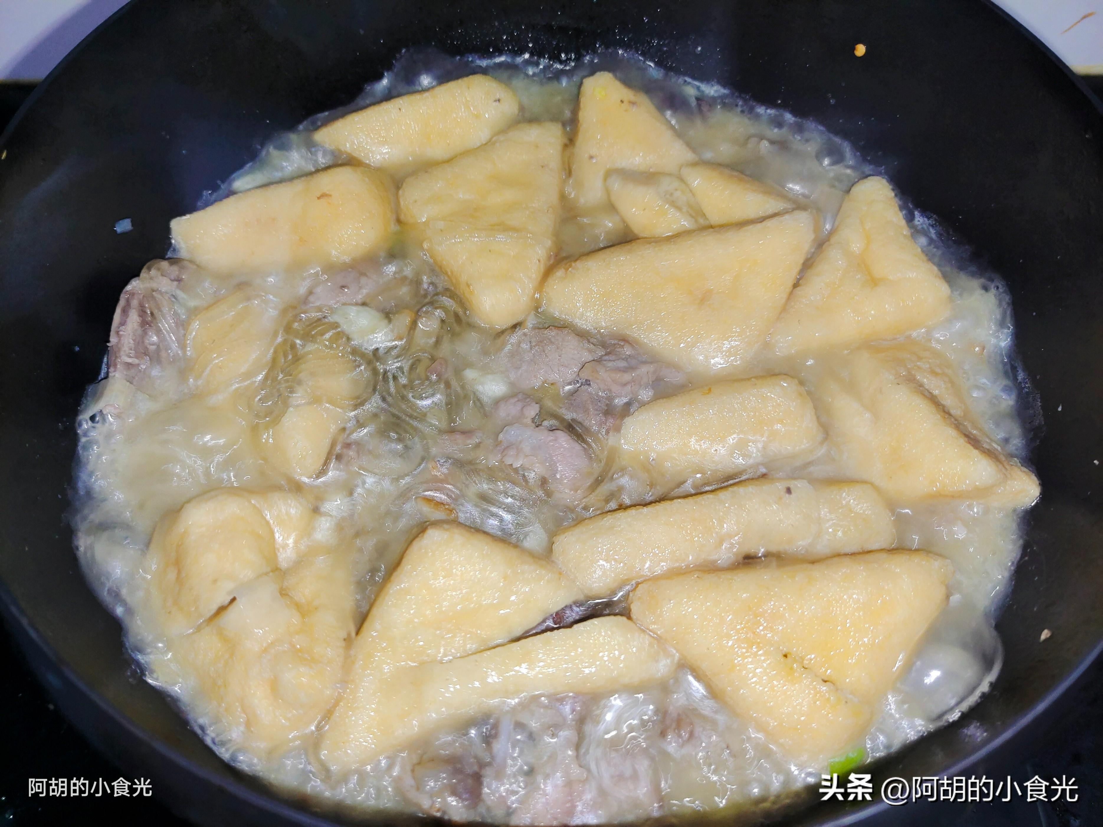 這道菜的食材有拆骨肉、油豆腐、青菜和粉條,其中燉拆骨肉的原湯也要利用起來,這樣油豆腐纔可以吸收肉香,而且最後調味也比較簡單,喫的就是鮮爽的原味,做法也更是容易上手,感興趣的一定別錯過這個做法。