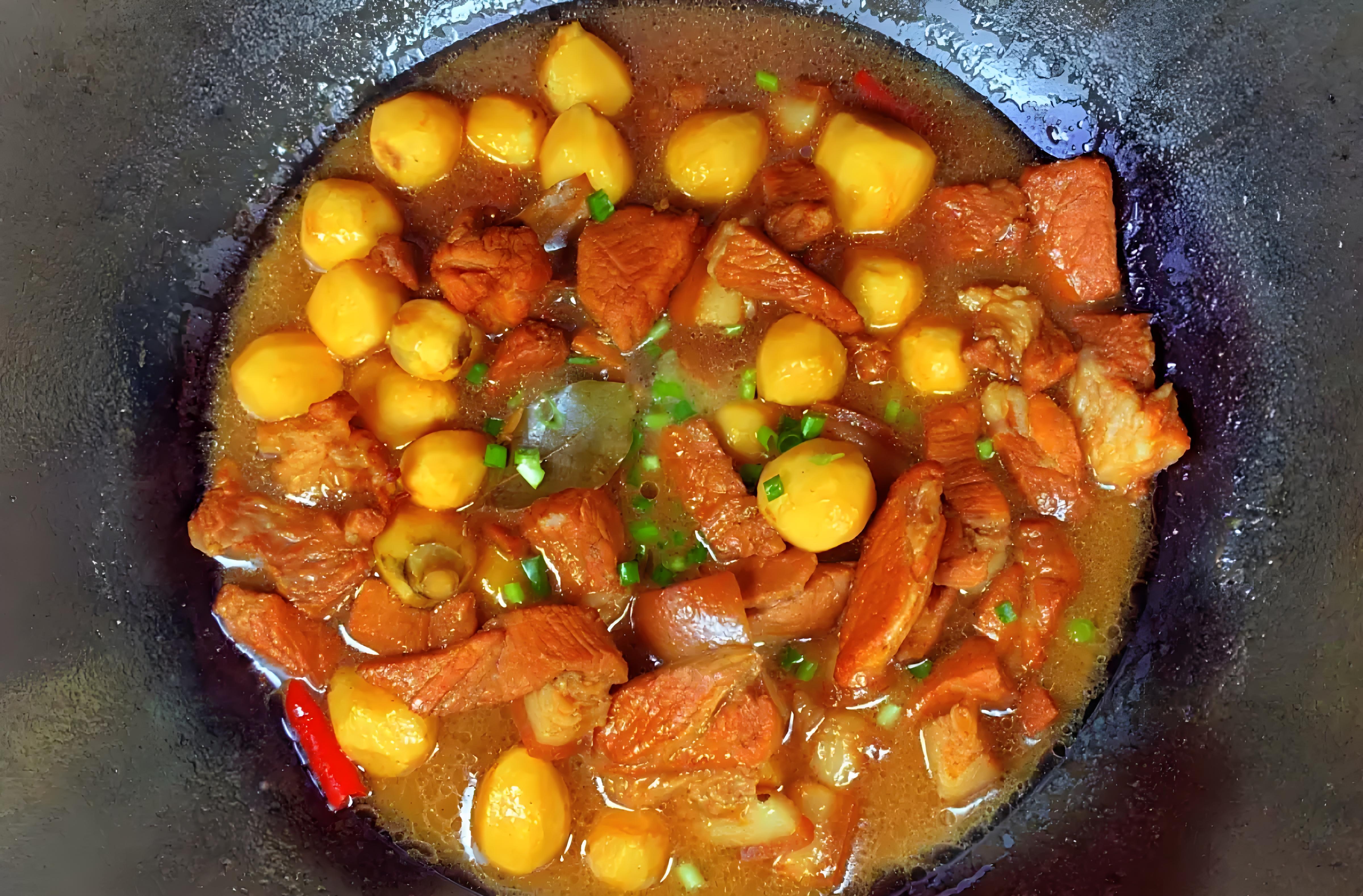 這一鍋端上桌,紅褐油亮的肉塊,配上吸飽了精華、粉糯糯的茨菇,熱氣騰騰,香氣撲鼻。夾一塊肉,顫巍巍,入口即化;再嘗一口茨菇,粉面香甜中帶着肉汁的豐腴,那點微苦的回味恰好解了膩。就着這濃郁的湯汁,都能多喫一碗米飯!