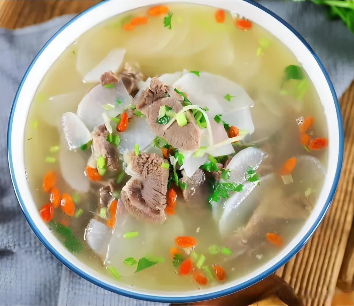 推薦喫法,滋補羊肉湯。搭配白蘿蔔燉湯,以中和燥熱,既潤肺生津又增強免疫力。