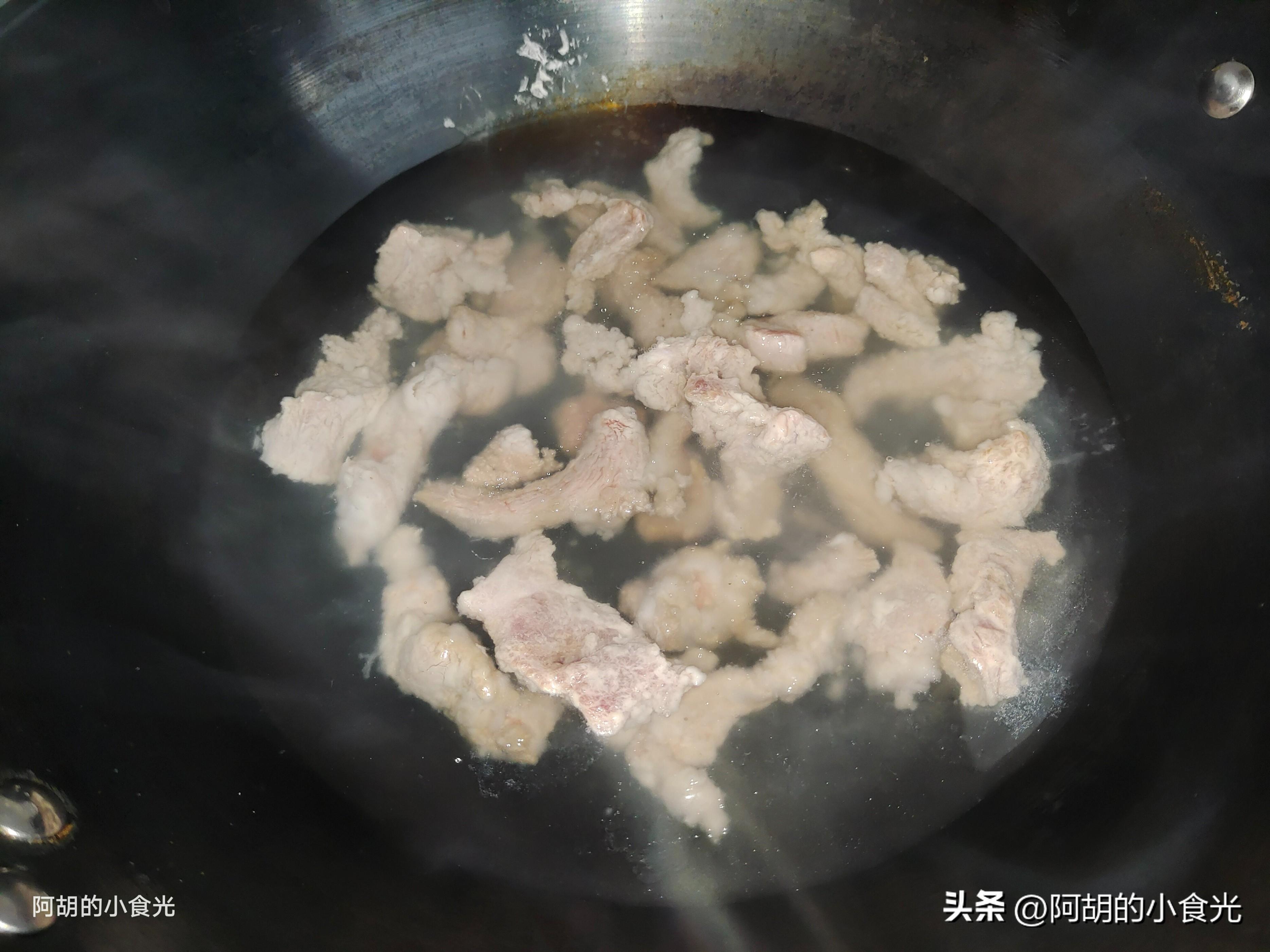 第三步:鍋裏添入適量的涼水,開大火將其煮開,完全沸騰後就立刻關火。取出上一步漿好的肉片,一片一片地下入到開水中,過程中動作要稍微輕一些。全部下鍋後就開最小火慢慢地加熱,直至肉片完全變色後就轉爲大火煮開,待肉全部漂浮起來後就關火。撈出肉片放入涼水中冷卻一下待用。