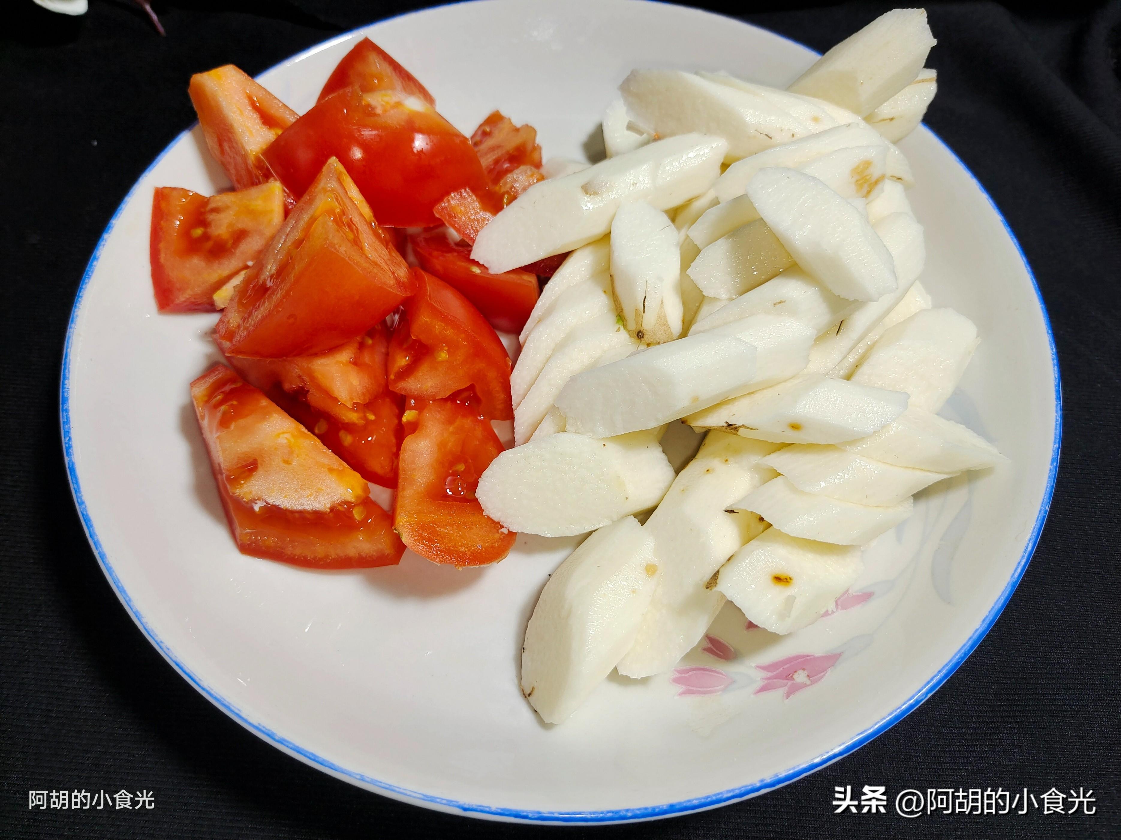 滑肉片、山藥和西紅柿就是今天這道湯的3樣食材,冬天的山藥是個好東西,適當多喫一喫有健脾益胃、強免疫的好處,搭配肉片和西紅柿簡單地煮一煮,一碗清湯就上桌,鮮美營養又容易做,值得試一試。