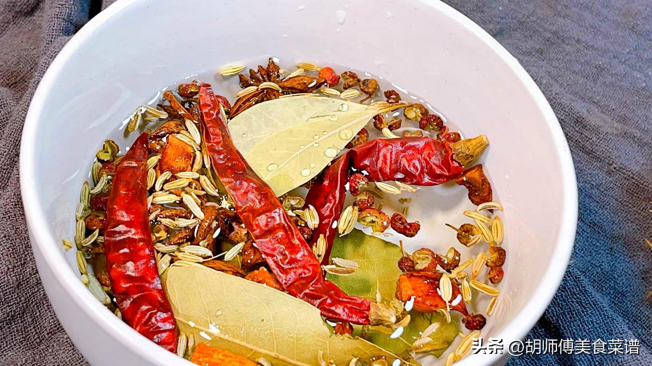 第一步:將雞頭米沖洗乾淨,然後將八角、桂皮、幹辣椒、花椒、小茴香放入冷水中浸泡20分鐘後撈出備用。