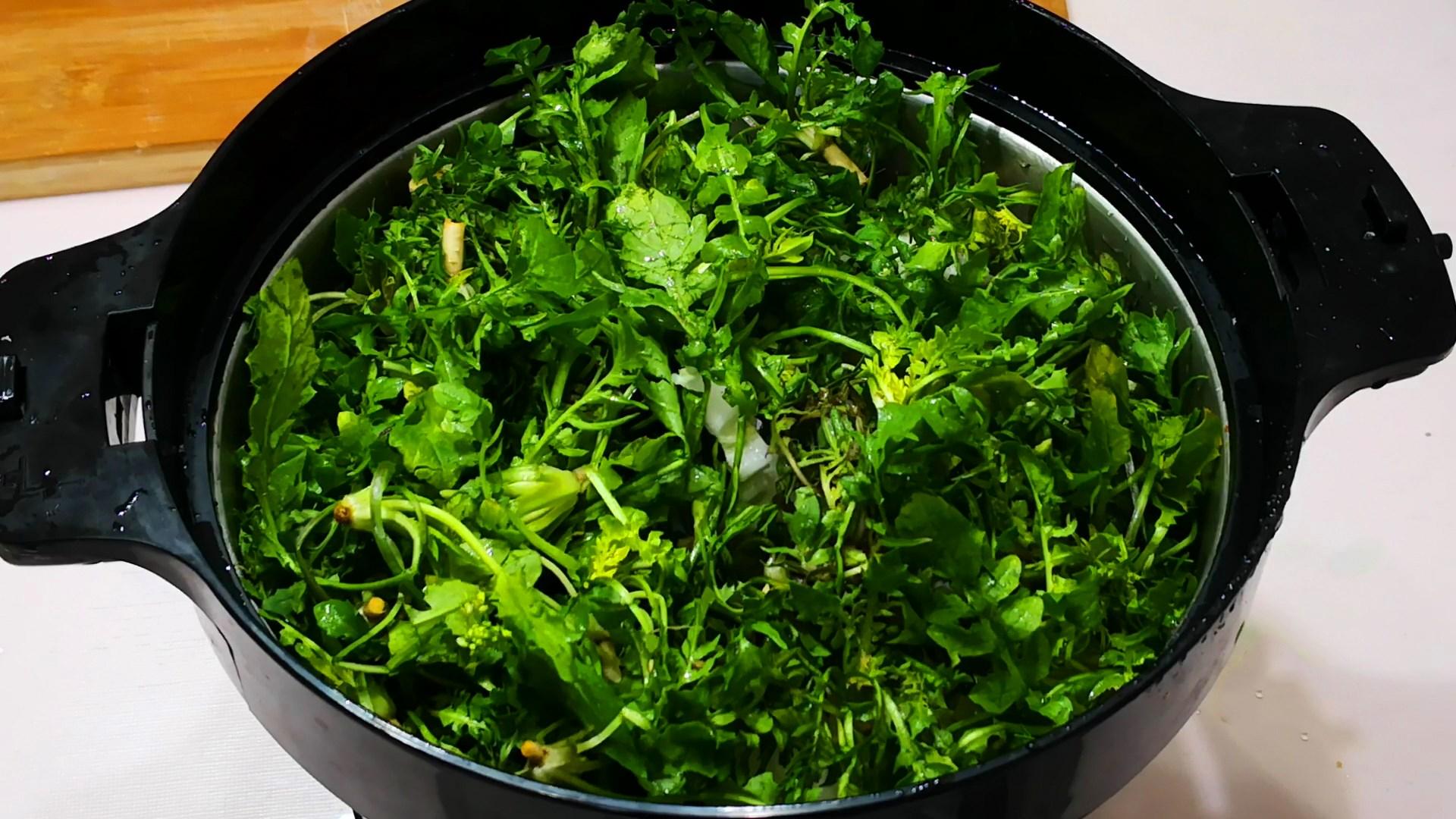 這一步可以防止餡料出水,防止包的時候破皮露餡;另外,因爲白菜和薺菜都喜歡大油水,所以要適量多加一點油。