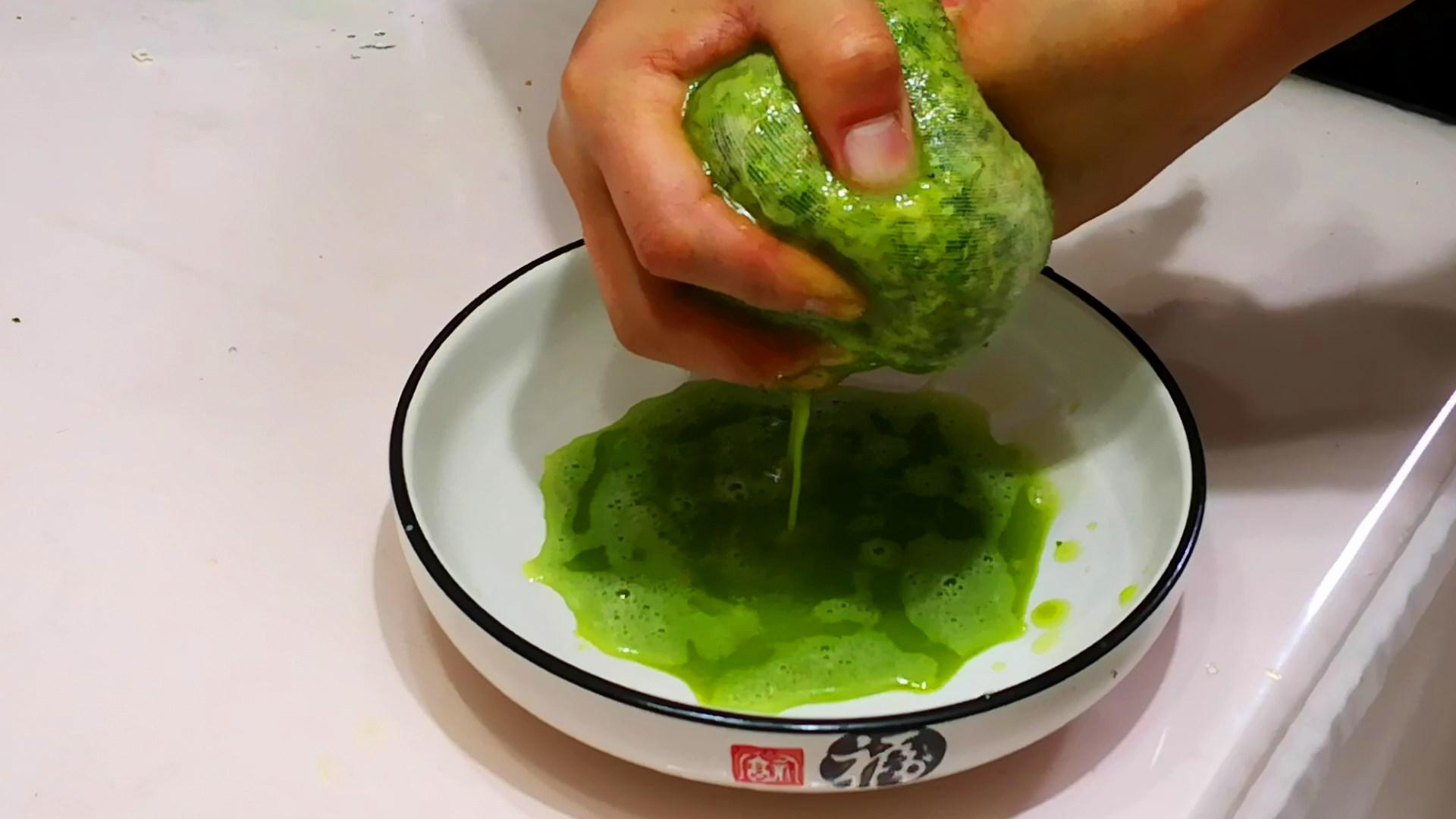 2.白菜葉子洗淨控幹水分,撕成大塊放到絞餡機中;一把薺菜摘洗乾淨後也放到絞餡機中,絞碎後倒出,不要絞得太細了,跟我們平時剁得餡差不多就可以了。絞好的白菜薺菜餡里加入一勺鹽,攪拌均勻後醃製10分鐘,再擠出多餘的水分,避免出水。