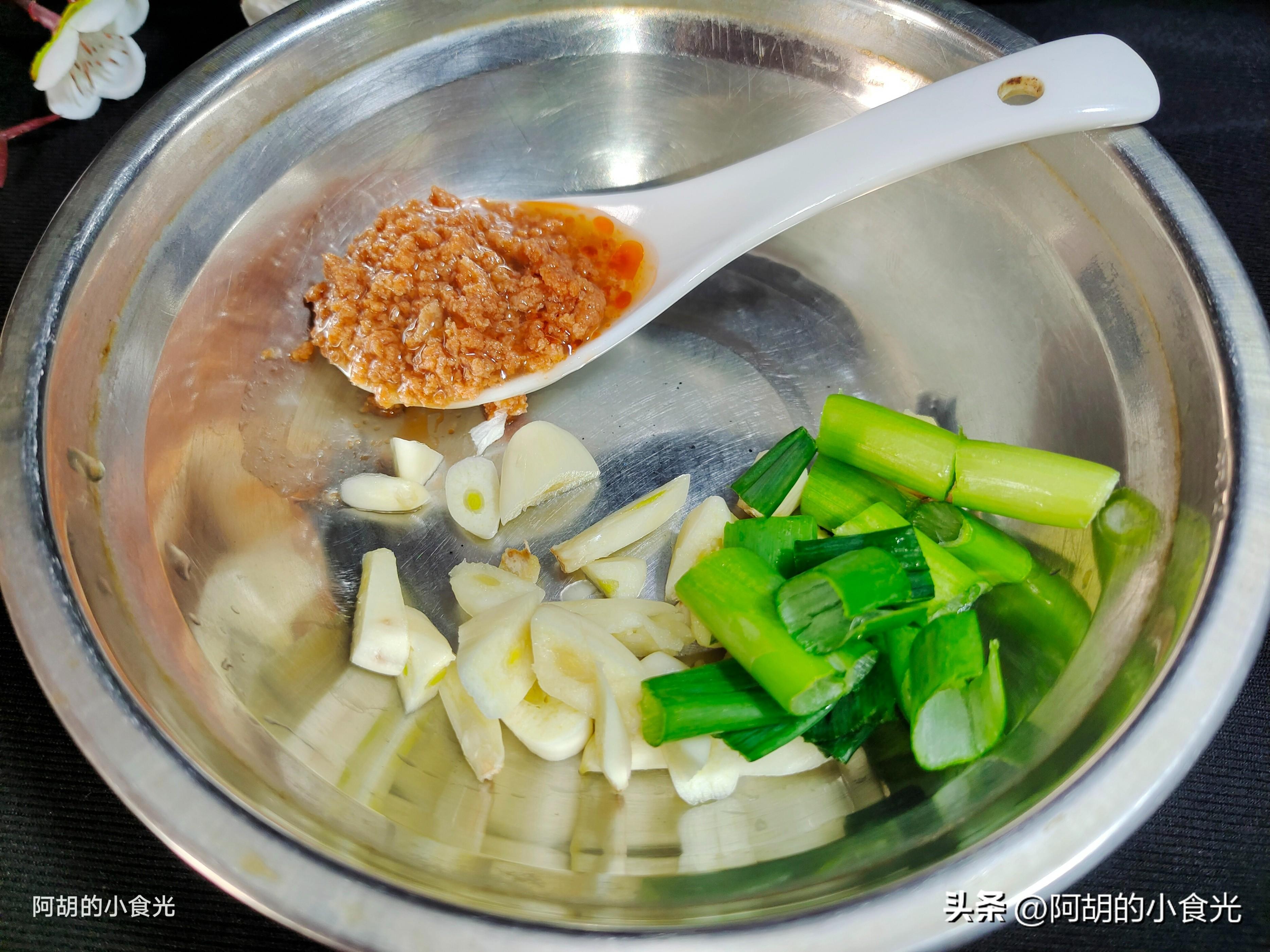 第三步:這道菜還有一個很重要的調料也要提前備好,這就是兩湯匙的蝦醬,用來提鮮增味。還有一些蔥薑蒜作爲小料待用。