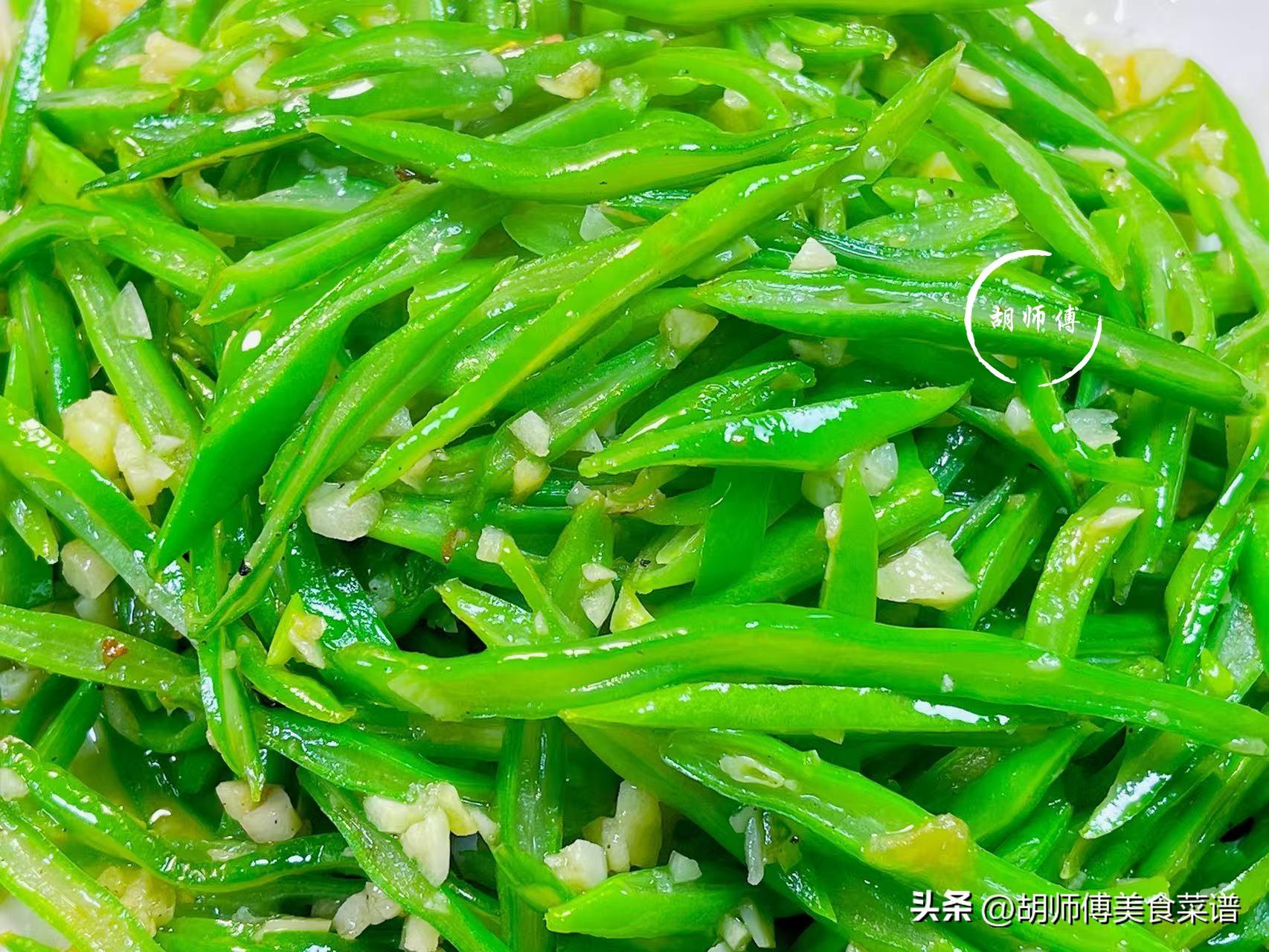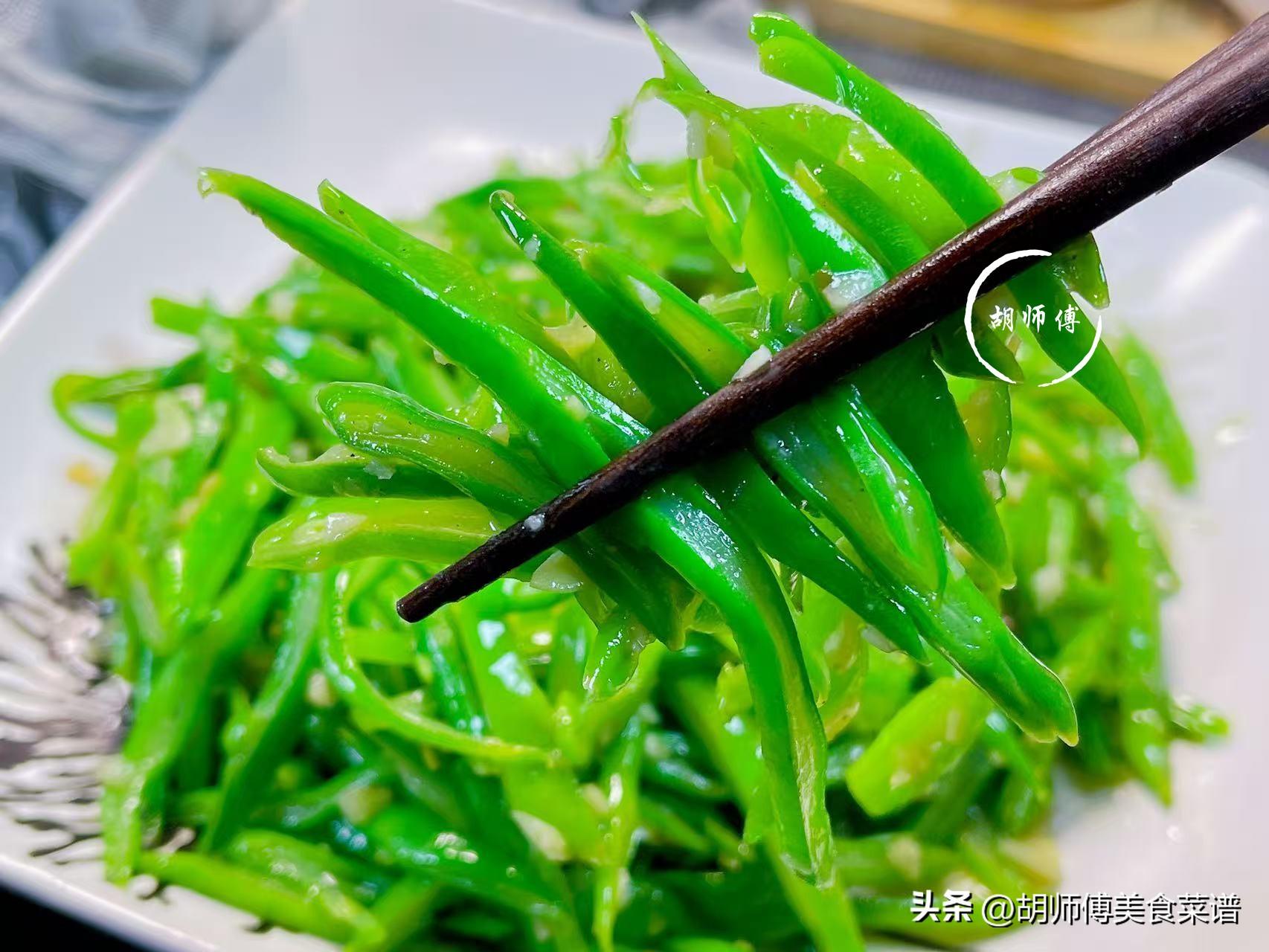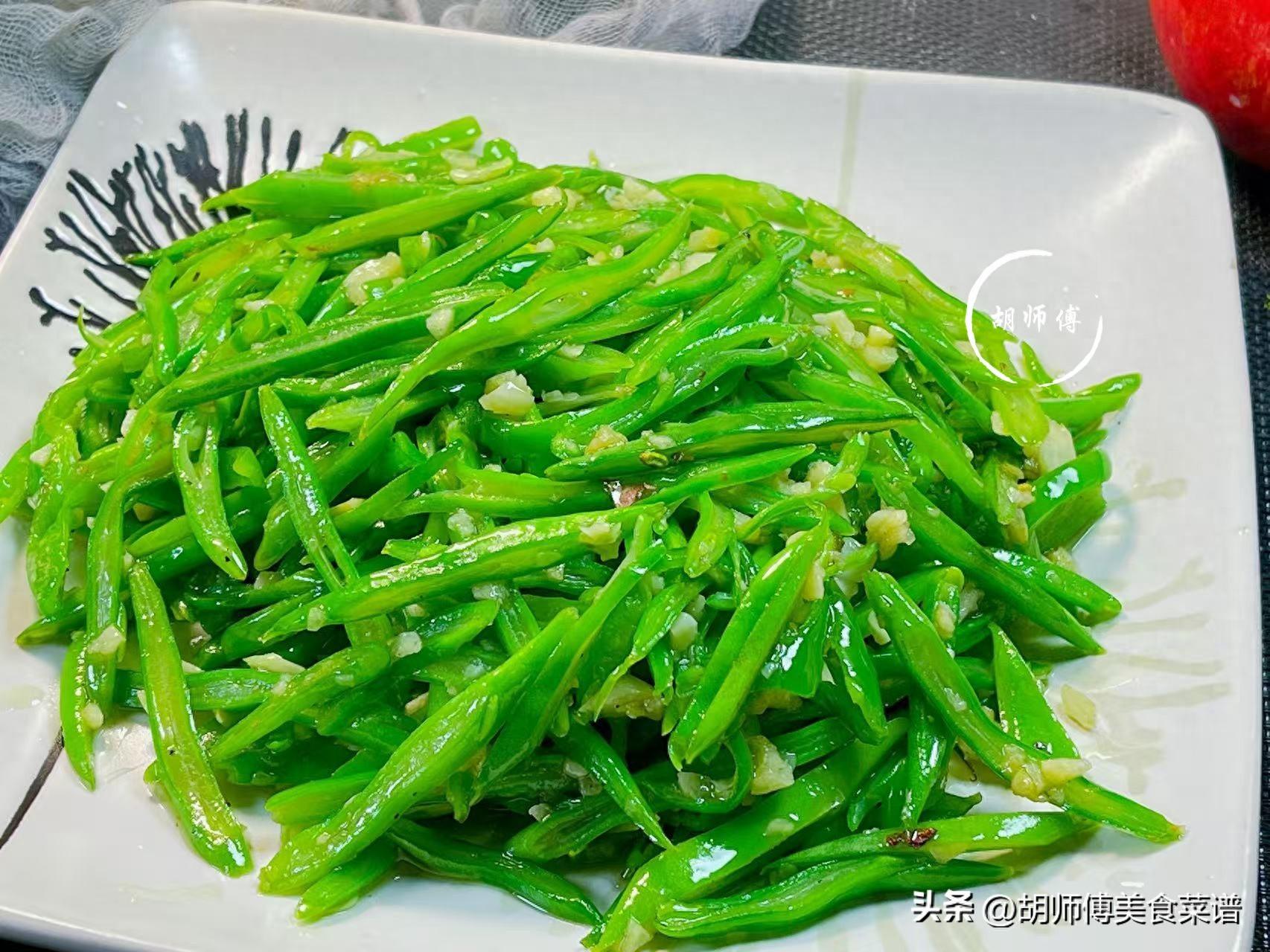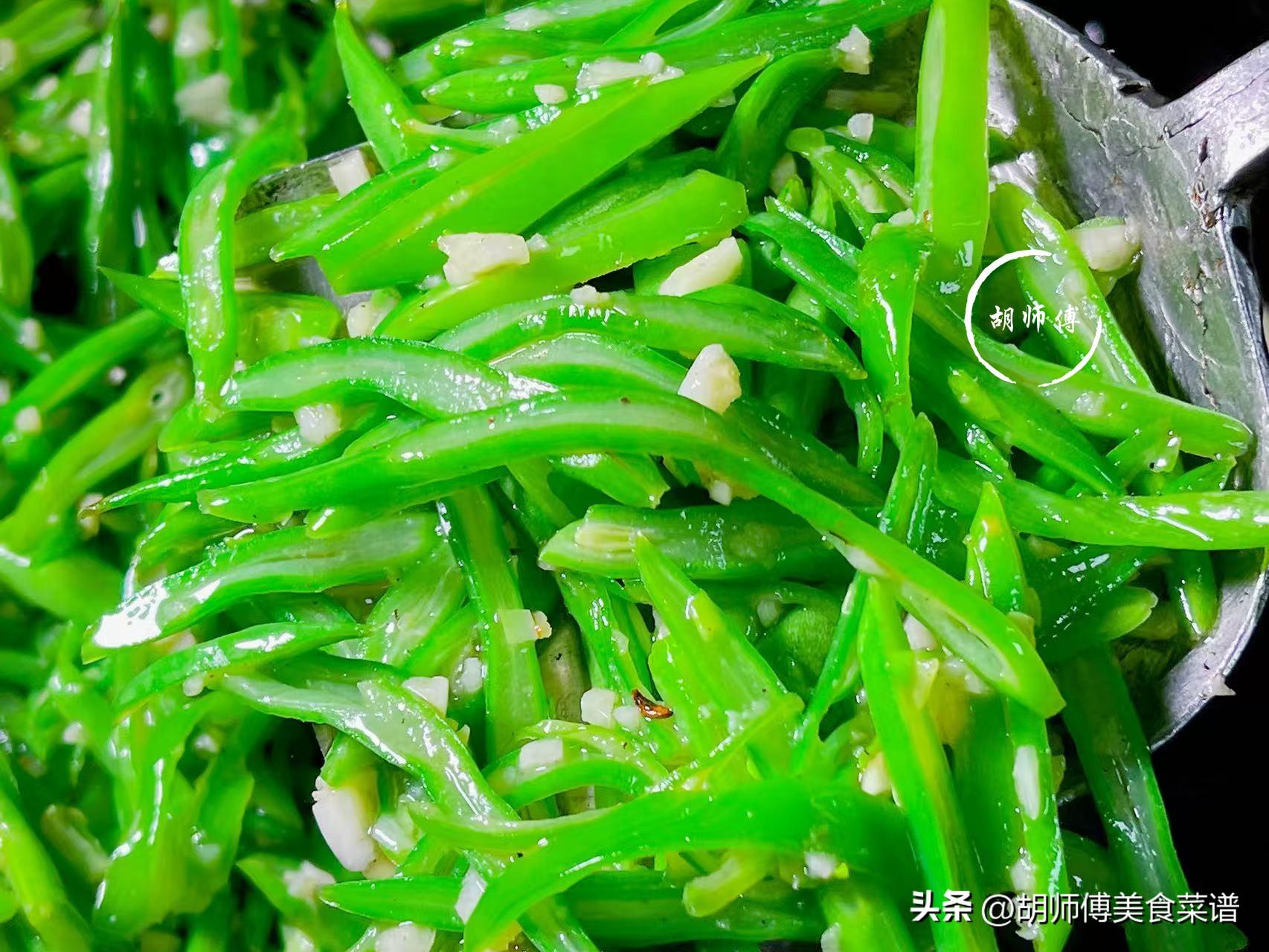 2、要想扁四季豆炒好的喫法,蒜一定不能少,當大量的蒜香味進入到扁四季豆絲中後,能使這道菜香上加香。