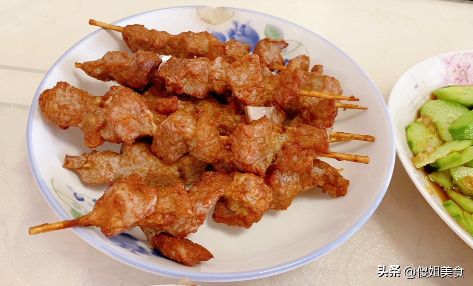 孩子最盼着的,就是那盤烤肉串了,是我們這兒一家連鎖肉食店買的成品。他們家的肉串用料實在,調味也準,肥瘦相間的肉塊串得紮實,回家用平底鍋煎一下,或者用烤箱、空氣炸鍋弄熟就行,特別省事。煎好的肉串外焦裏嫩,滋滋冒油,撒上點孜然辣椒麪,那香味能把饞蟲都勾出來。兒子一手抓一串,啃得滿嘴油光,別提多滿足了。我們大人也愛喫,時不時來上一串,解饞又過癮。