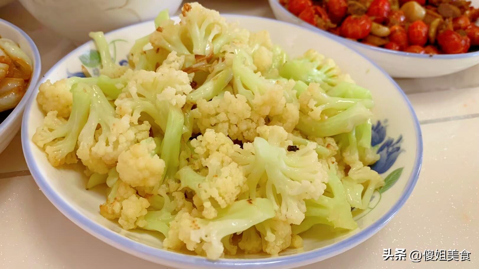 清炒花菜是最簡單的清爽擔當。 花菜掰成小朵,用鹽水泡一會兒再衝洗乾淨。鍋裏燒熱油,先拍幾瓣蒜末扔進去爆香,聞到蒜香味就把瀝乾水的花菜倒進去,大火快炒。炒到花菜邊緣有點焦黃,加鹽和一點點蠔油調味,沿着鍋邊淋少許熱水,蓋上蓋子燜一兩分鐘,讓花菜熟透又不會太過軟爛。最後開蓋再翻炒幾下就可以出鍋。這樣炒出來的花菜脆嫩爽口,帶着蒜香,清清淡淡的,正好平衡其他菜的濃郁。