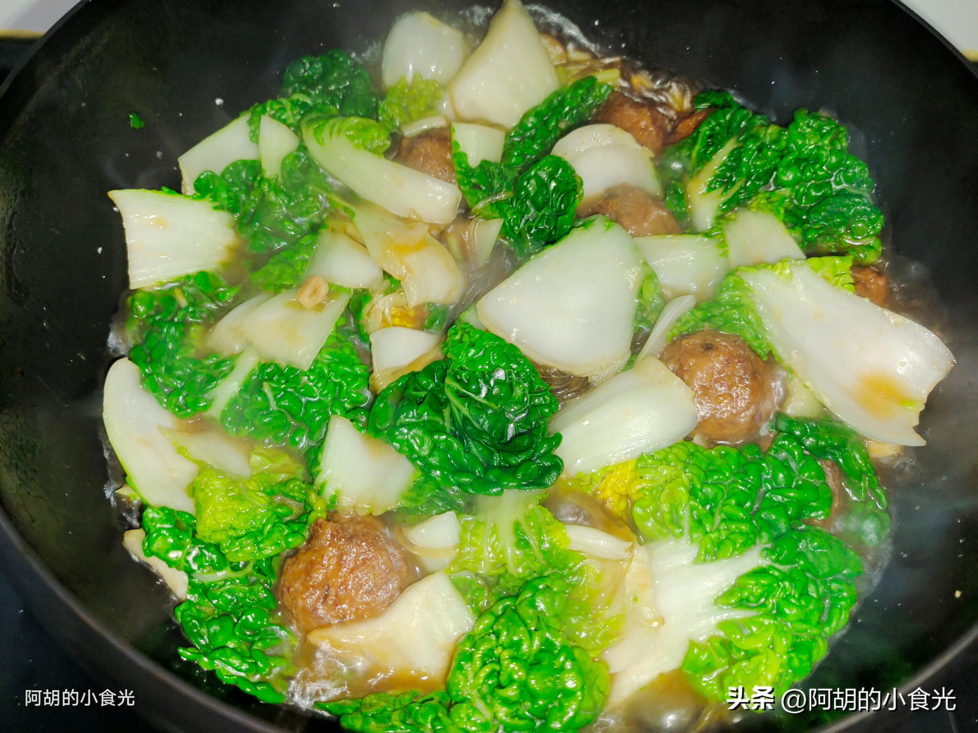 不喜歡油炸肉丸的也可以更換味牛肉丸或者水汆的豬肉丸即可。一定要先燉肉丸,而後再下入蔬菜燒一燒即可,這樣可以避免蔬菜燉久了而變色發爛,畢竟霜打的蔬菜本就很鮮嫩,不適合燉煮太久。