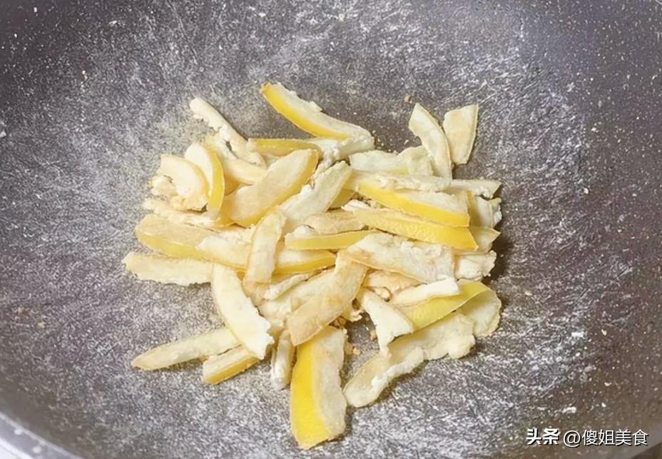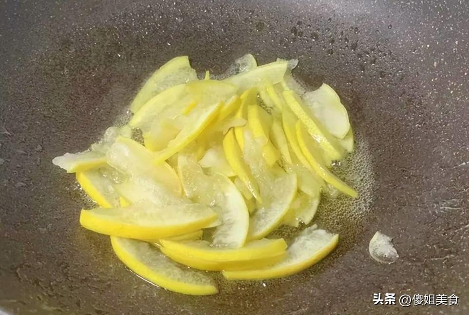 把水倒掉,再接滿冷水,繼續揉捏。這個過程我大概重複了四五次,直到擠出來的水變得比較清澈,聞着只有淡淡的柚子香,沒什麼苦味了就行了。別嫌麻煩,這一步決定了成品好不好喫。擠幹水分的柚子皮,現在變得瘦瘦的、軟軟的。