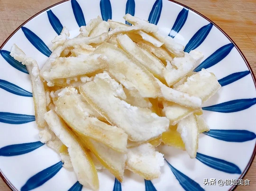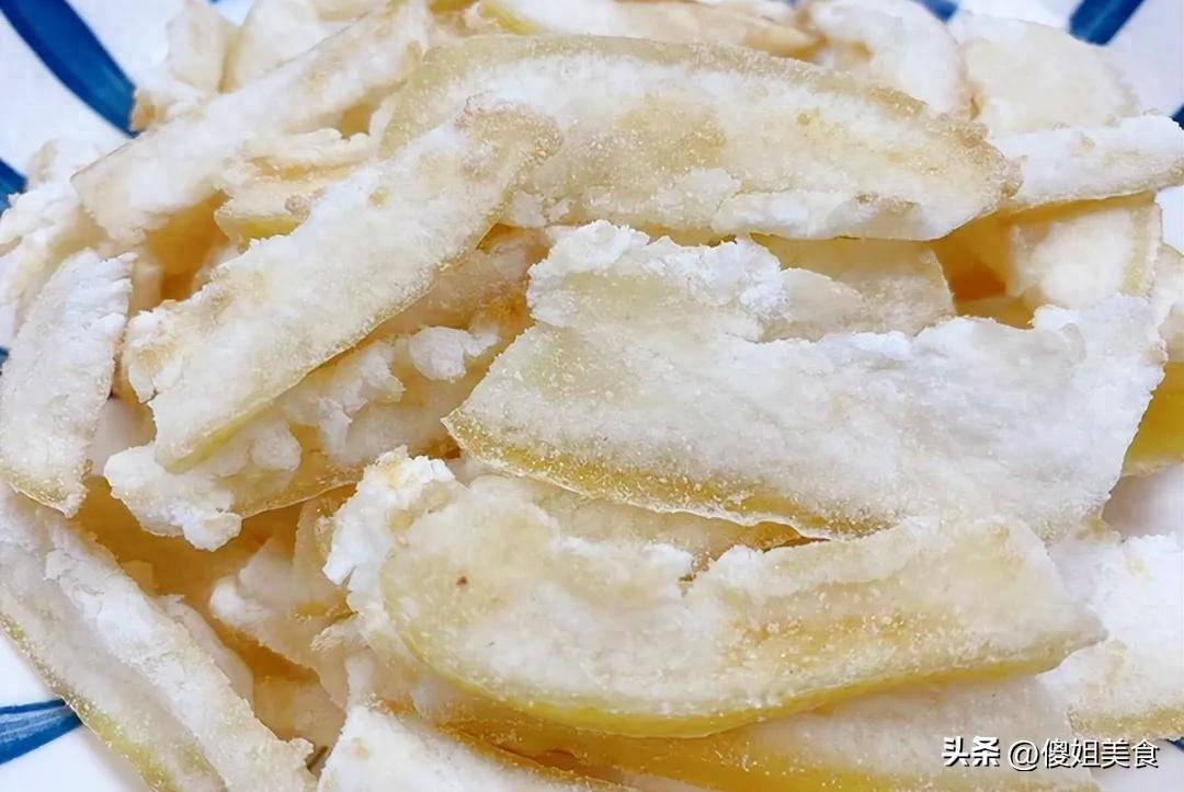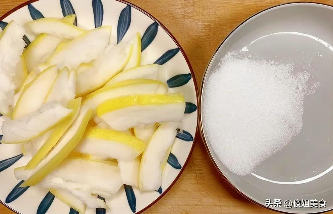 這時候我就想起老家一個特別管用的老法子,用柚子皮做小零食。沒錯,就是咱們喫柚子時通常隨手扔進垃圾桶的那層厚厚的白瓤,可別小看它,在我們那兒,老輩人都說柚子皮是個“寶”,特別會過日子的主婦們從來不捨得扔。