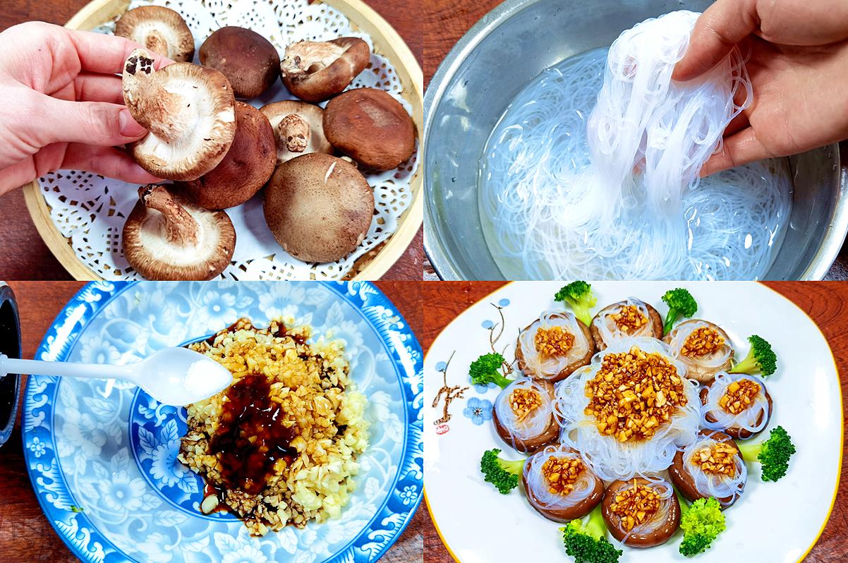 1. 香菇洗淨去蒂,粉絲用溫水泡軟後剪短。