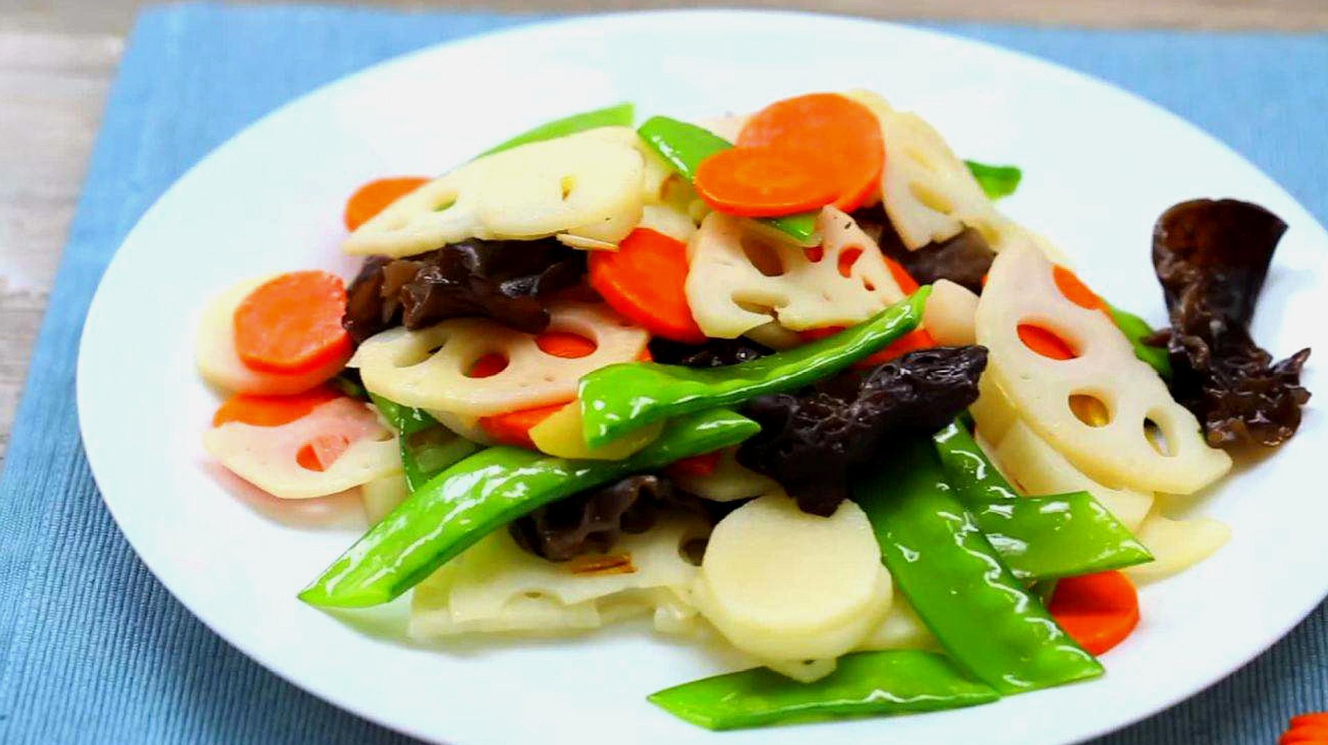 荷塘小炒是一道非常適合元旦家宴的家常小炒,色彩繽紛、口感豐富,寓意吉祥團圓,諧音“四季平安”。