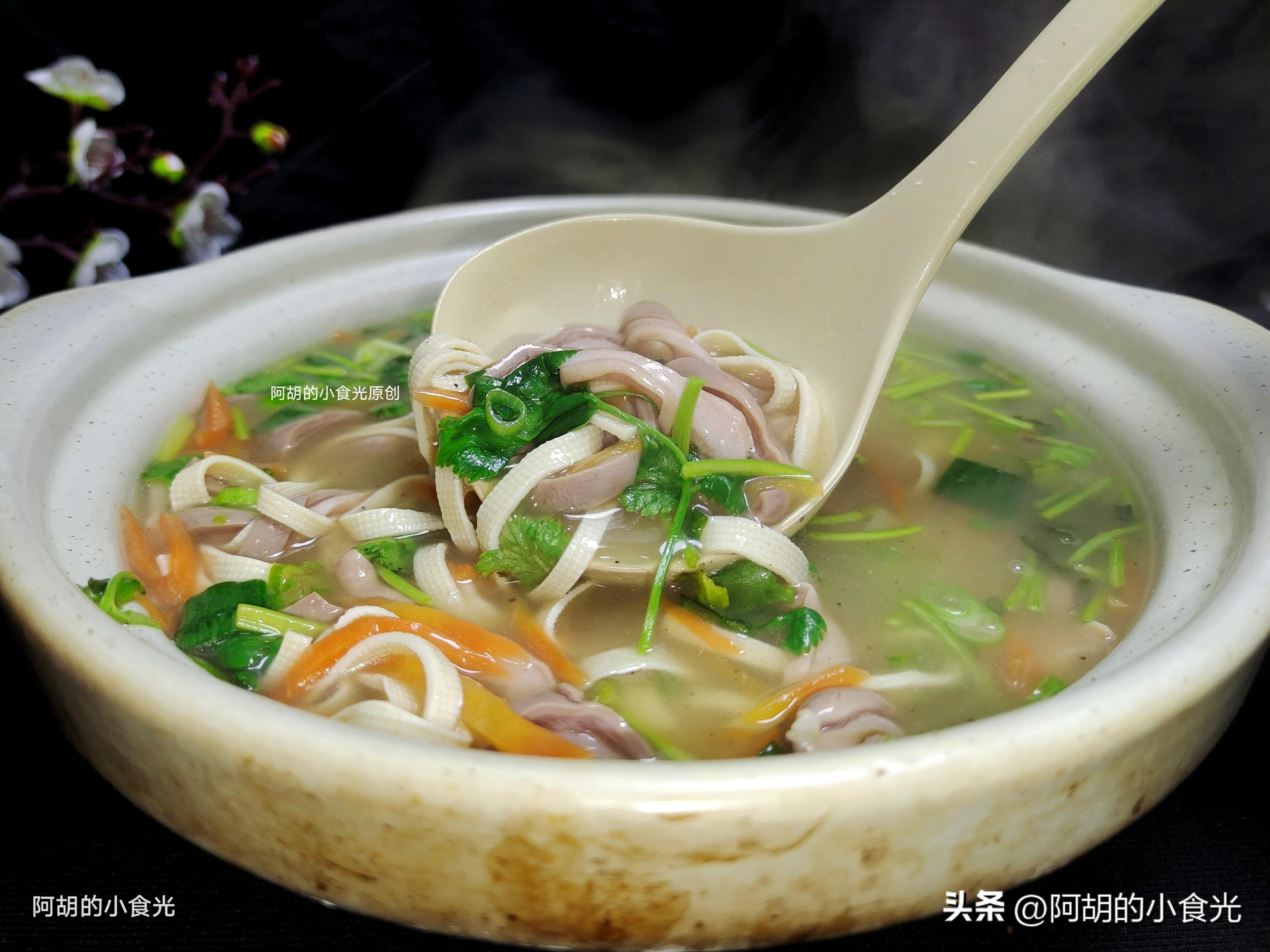 我是阿胡的小食光,一個喜歡研究把普通食材做出更多花樣美食的饕餮小食客!飯前沒食慾,不妨試一試這碗湯,酸辣開胃,還有肚絲的脆嫩、千張絲的滑嫩,好喫好喝值得試一試。如無特殊情況,我每天都會按時分享一道家常美食的做法,在此特別感謝您的每一個贊和”小紅心“,明天的內容依舊很精彩,敬請期待!