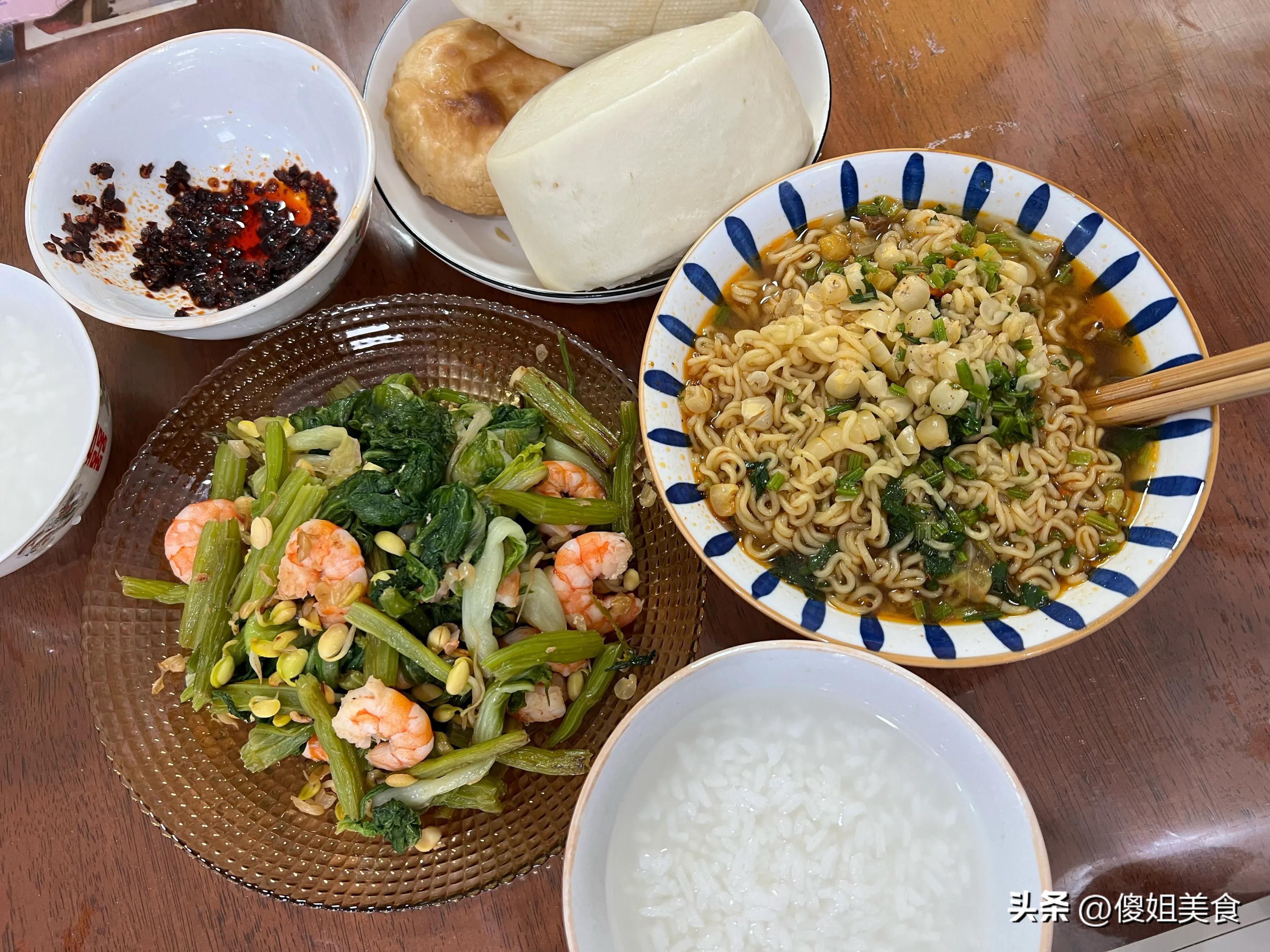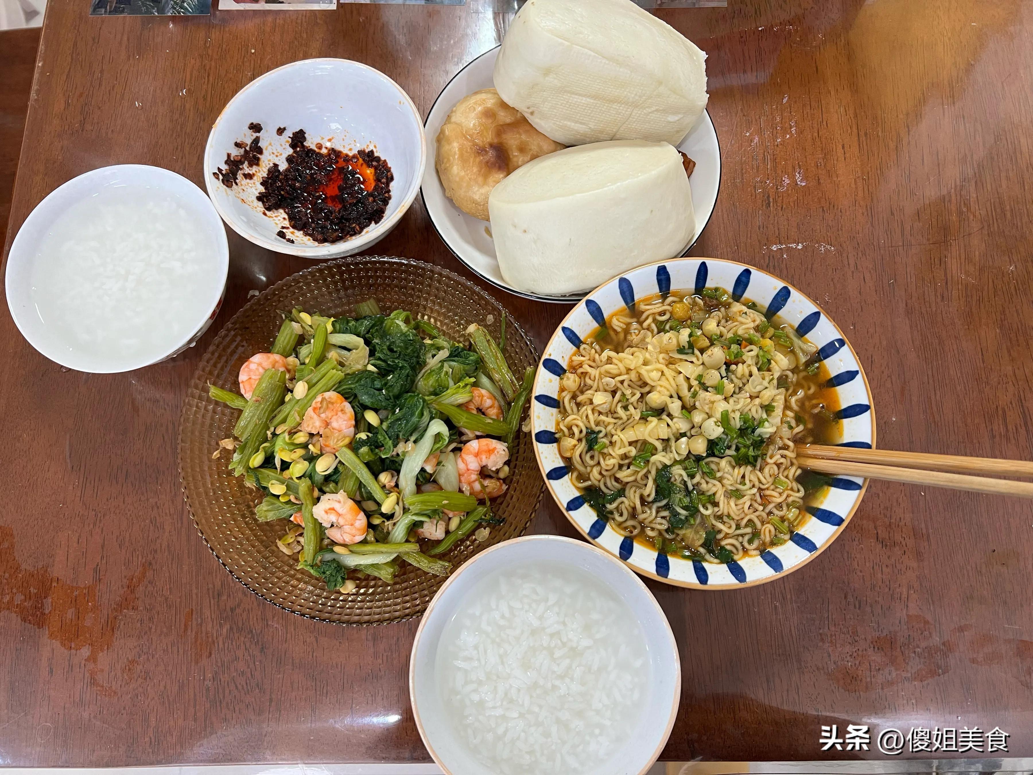 看着這張午餐照片,我想起了很多小時候的事兒。那時候家裏條件一般,可我媽總能變着花樣給我們做好喫的。一把青菜、幾個雞蛋、一點麪粉,在她手裏就能變成美味的一餐。我爸呢,就愛在喫上有點小“任性”,時不時就想喫點“不健康”的,比如方便麪啦、油炸食品啦,我媽從不硬攔着,但總會想辦法讓它變得“健康”一點——往方便麪里加蔬菜和雞蛋,炸東西時控制油溫少吸油……