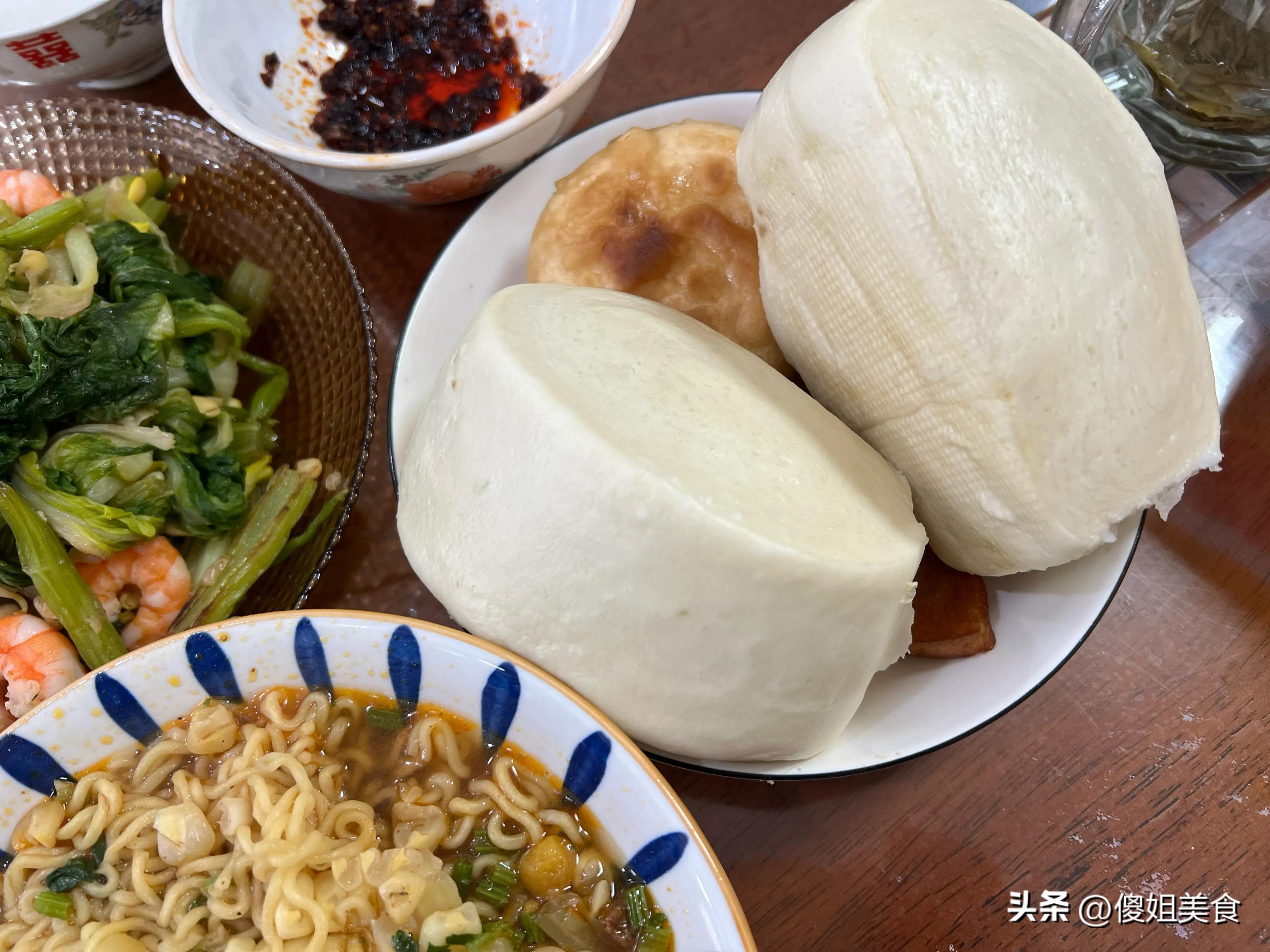 主食是饅頭和火燒。饅頭是昨天從樓下饅頭店買的,今天蒸一下,軟乎乎的;火燒是我上週回家帶過去的,老家特產,爸媽都愛喫,還剩最後兩個。