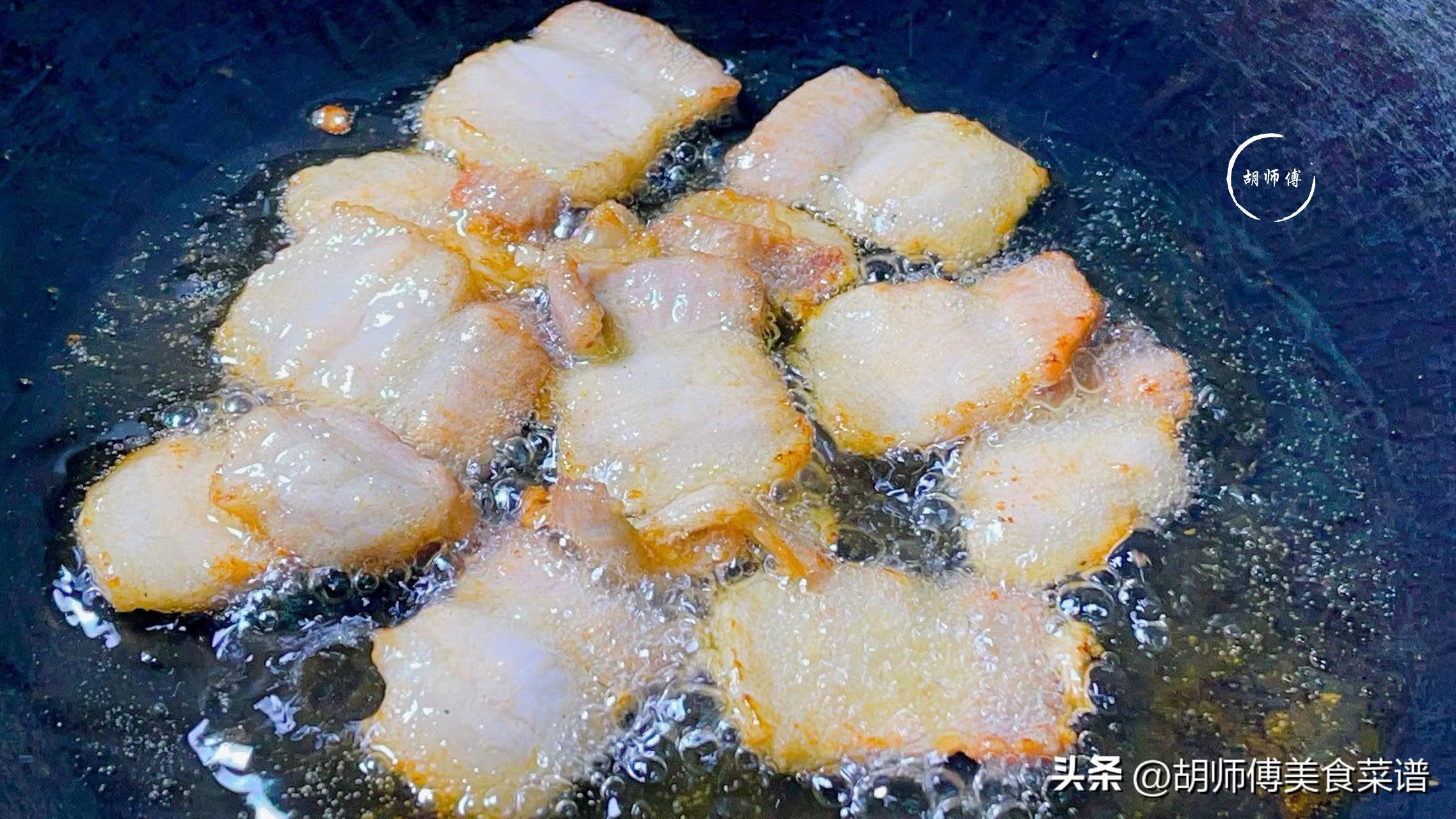 第二步:鍋中放入適量油,然後把切好的五花肉放入鍋中,中火將五花肉炒成金黃色後,再把薑末放入鍋中爆香。