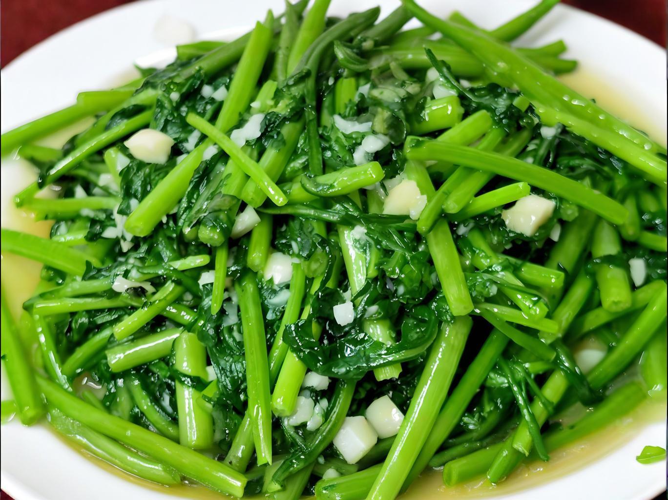 這道菜最大程度保留了茼蒿的本味和翠色,蒜香濃郁,口感脆嫩,是餐桌上一道清爽的風景線。