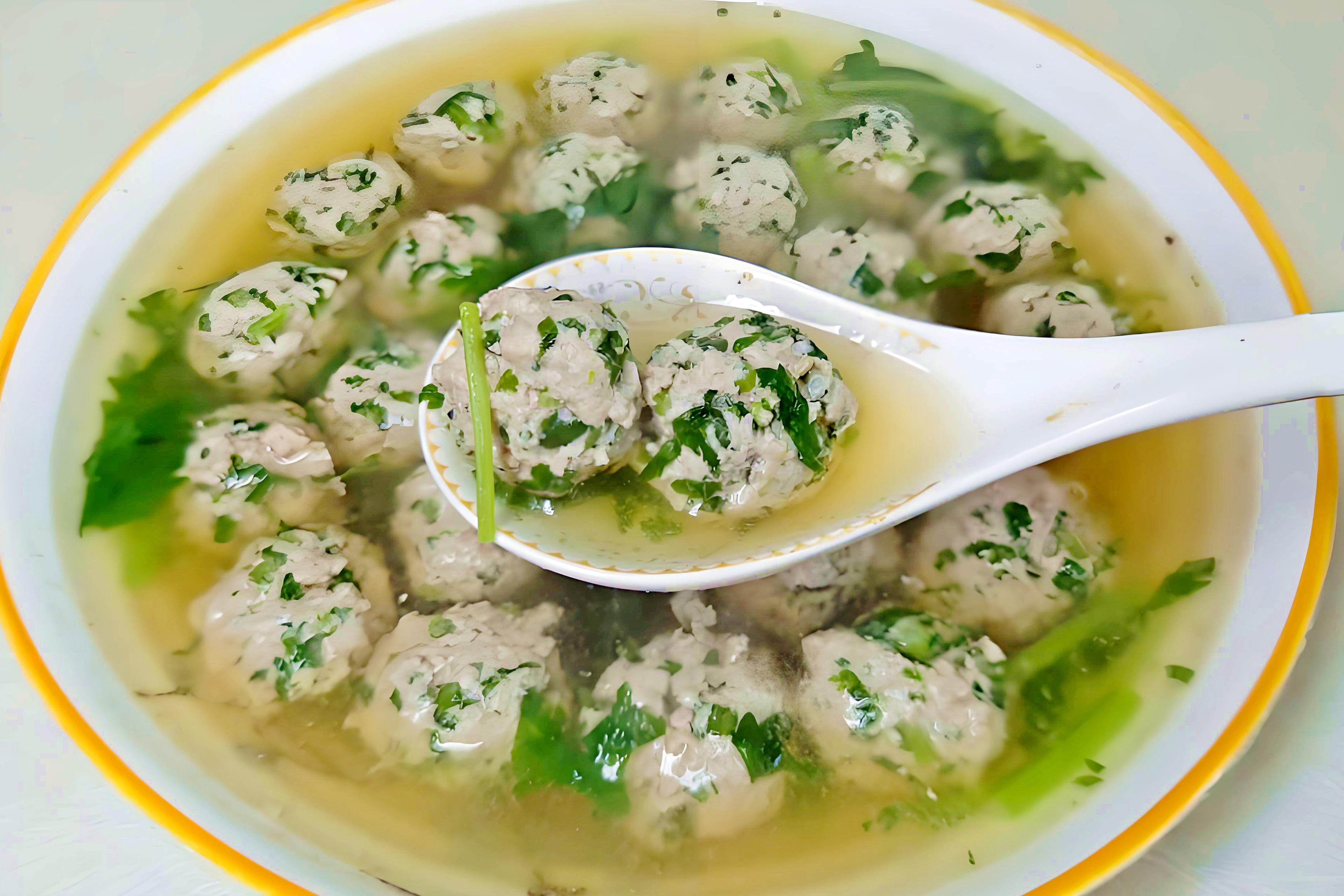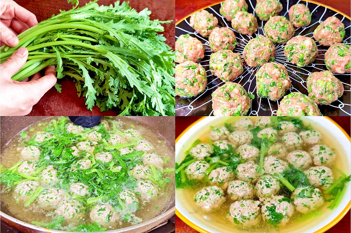 二、 茼蒿豬肉丸子湯:葷素搭配,暖心暖胃