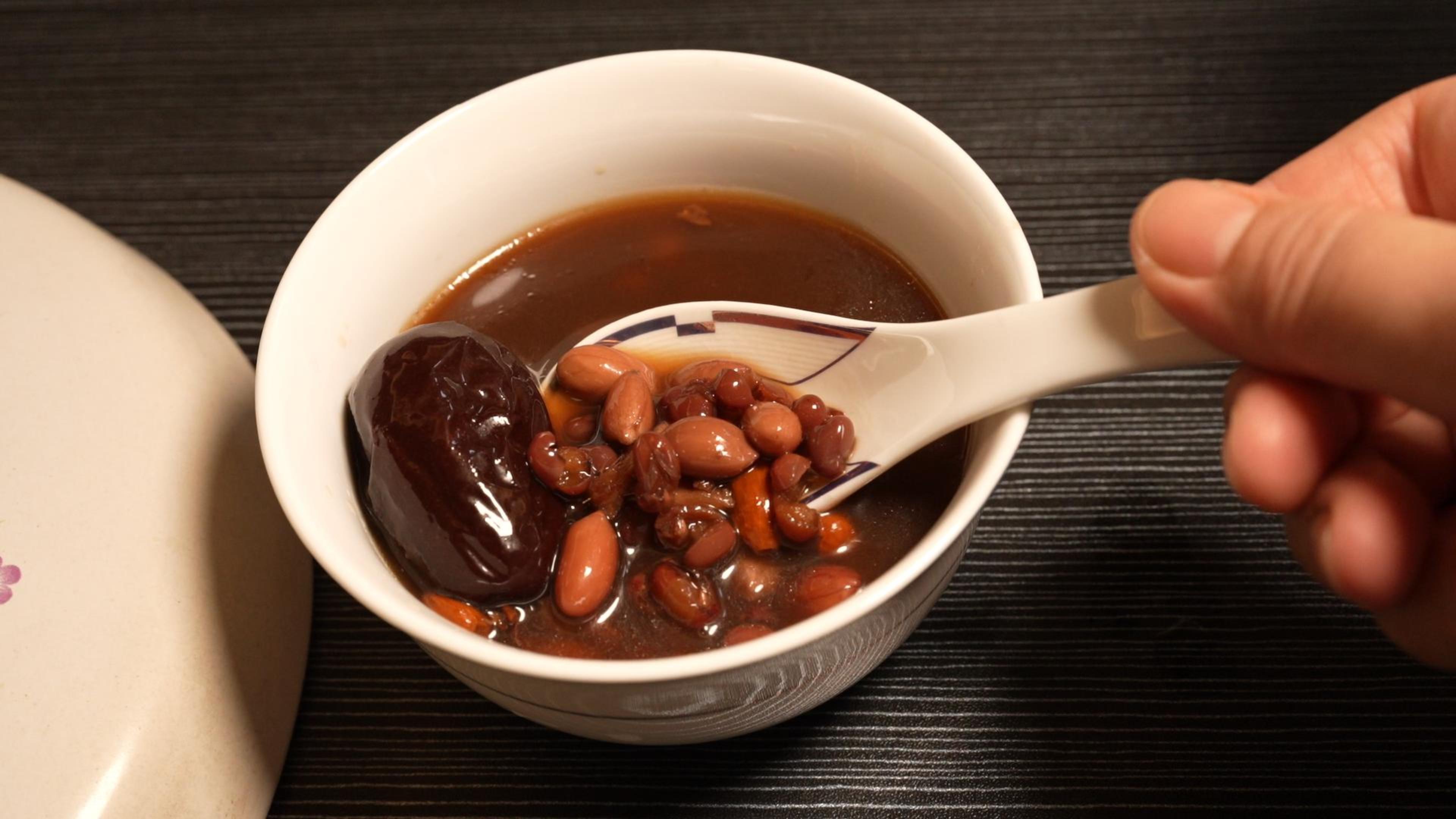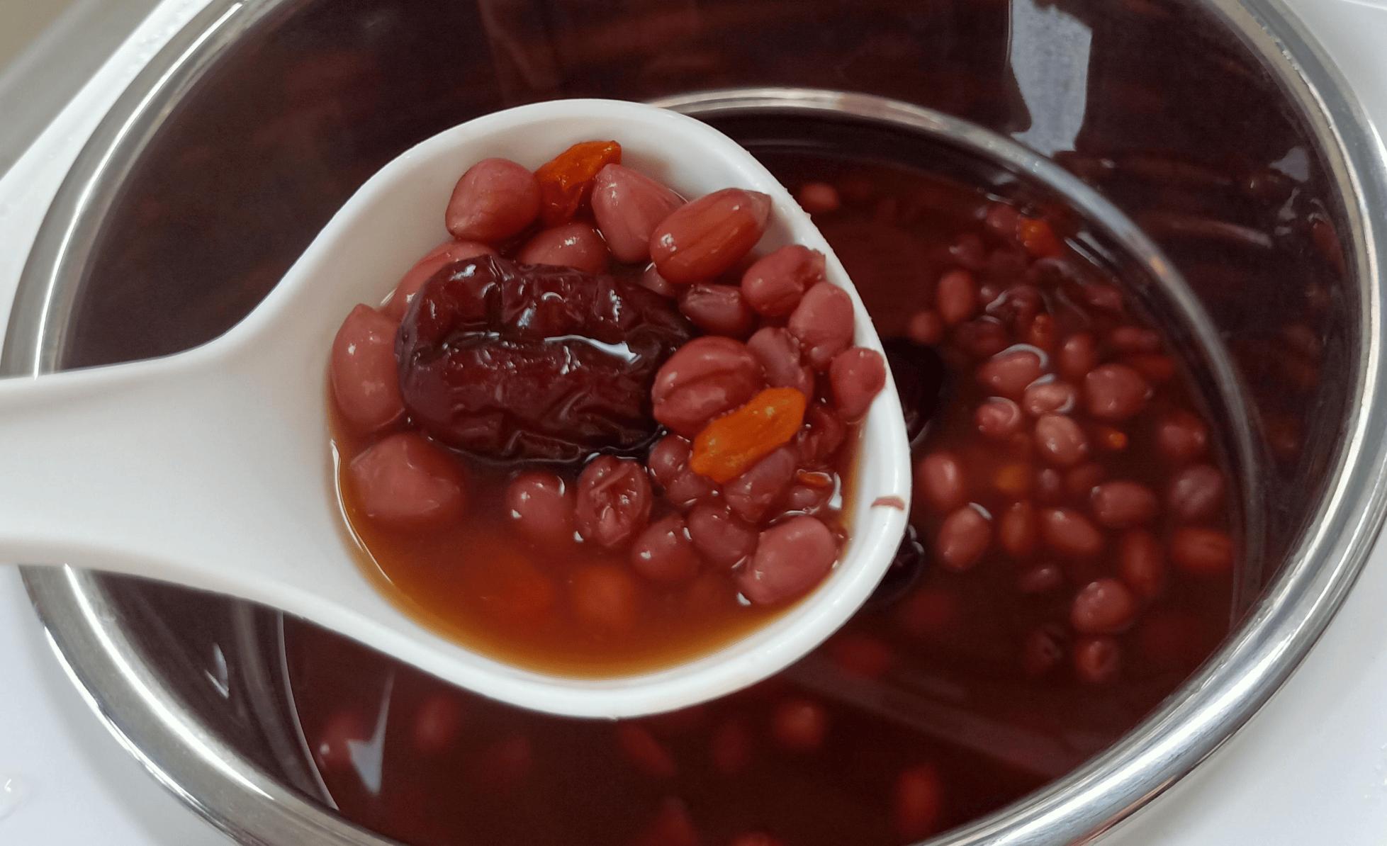 食材:紅棗、紅豆、紅衣花生、紅糖,枸杞
