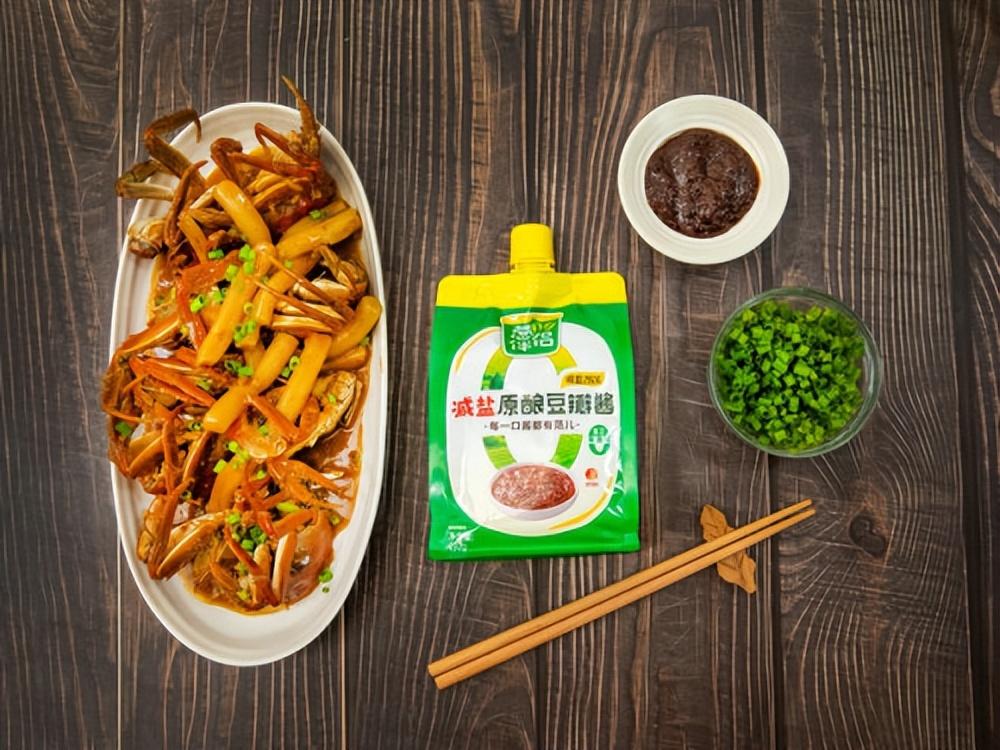 毛蟹鮮味足,但對調味要求高,醬料過重容易蓋住海鮮本味。這道醬香毛蟹炒年糕選用蔥伴侶減鹽原釀豆瓣醬作爲底味,先炒出醬香再燜煮入味,讓蟹肉保持鮮甜,同時讓年糕充分吸收醬汁。減鹽豆瓣醬鹹鮮適中,使整道菜呈現出“鮮而不鹹”的口感,一鍋即可兼顧主菜與主食。