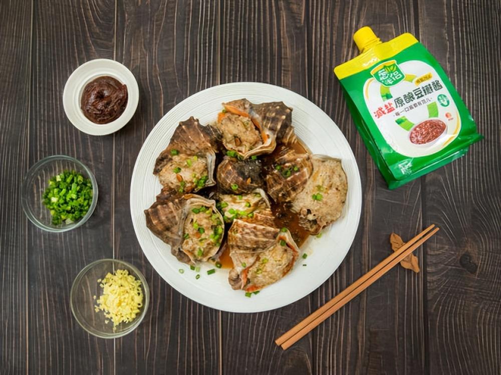海螺釀肉結合了海鮮的彈嫩與肉餡的鮮香,對調味的均衡度要求較高。肉餡中加入蔥伴侶減鹽原釀豆瓣醬進行基礎調味,不需要額外加鹽即可形成清晰醬香。蒸制後再淋上以豆瓣醬調製的薄芡,使味道層次更加完整。減鹽豆瓣醬的使用,讓整道菜鮮而不鹹,適合家庭日常或宴客場景。