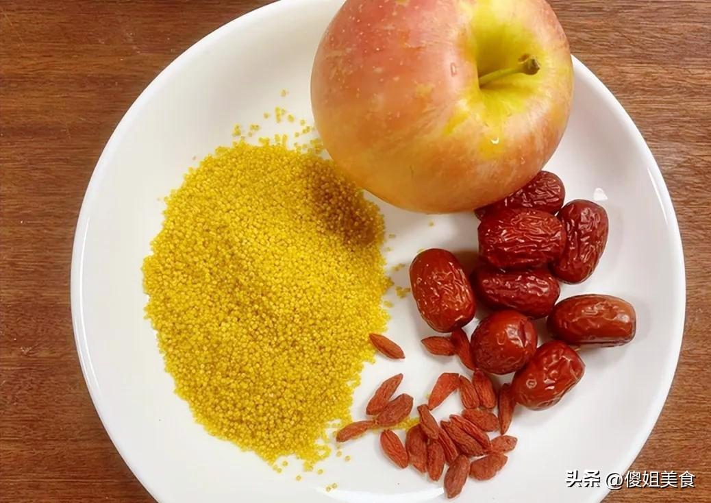 【小米蘋果粥】準備食材:小米、蘋果一個(選甜脆的那種,比如富士)紅棗幾顆、枸杞一小把紅糖適量(喜歡原味的也可以不放)