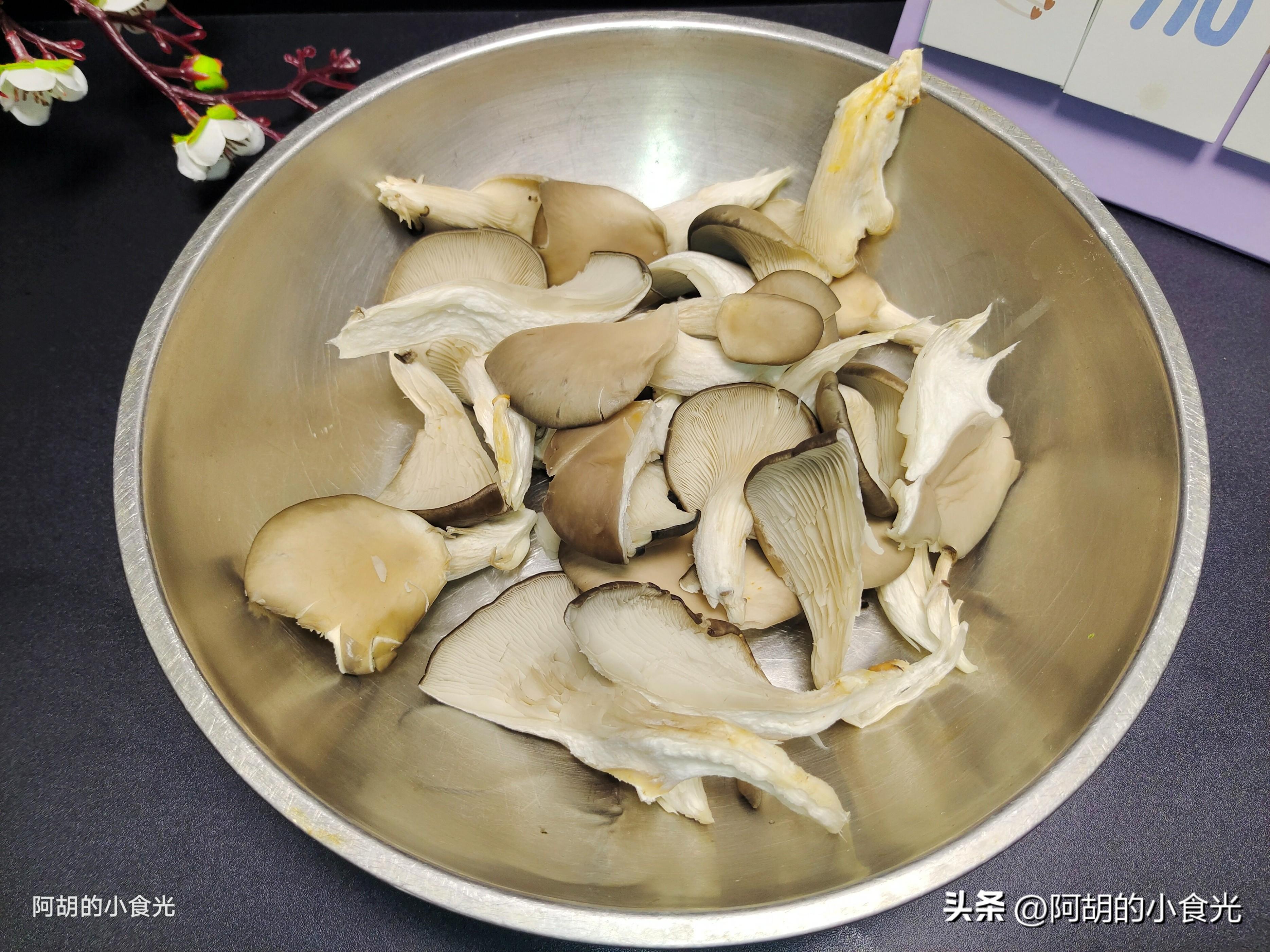 第一步:先來處理平菇,把平菇拆開撕成小朵,再用清水仔細地清洗乾淨。害怕清水沖洗不乾淨的,可以用涼水浸泡,同時撒入一些食鹽和幹澱粉攪拌均勻,這樣食鹽可以消滅一些蟲卵,澱粉水又可以吸附傘蓋中夾雜的一些灰塵顆粒,撈出後再用清水沖洗乾淨待用。