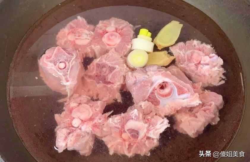 【做法步驟】第一步:將羊蠍子沖洗幾遍,冷水下鍋,水量要沒過所有骨頭,倒兩勺料酒,切幾片姜扔進去,等水慢慢燒開,你會看到水面浮起一層灰褐色的沫子,這就是血水和雜質。拿個勺子,耐心點兒,把這些浮沫一點點撇乾淨。好了把羊蠍子撈出來,用溫熱的水沖洗一下,把表面沾的浮沫沖掉。衝乾淨後,放在瀝籃裏備用。
