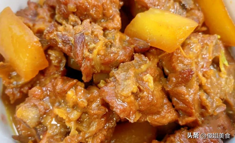 一鍋完美的羊蠍子燉白蘿蔔就大功告成了,羊蠍子上的肉已經燉得軟爛脫骨,輕輕一咬就下來了,骨髓用筷子一捅就能吸到,香得不得了。白蘿蔔呢,晶瑩剔透,變成了淡淡的醬色,咬一口,軟糯香甜,完全沒有生蘿蔔的辛辣,全是肉湯的精華。