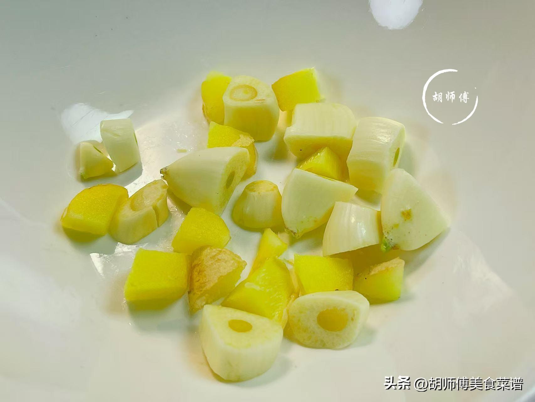 第二步:將大蒜籽、老薑都沖洗乾淨,然後把它們切成如下圖所示的塊狀備用。