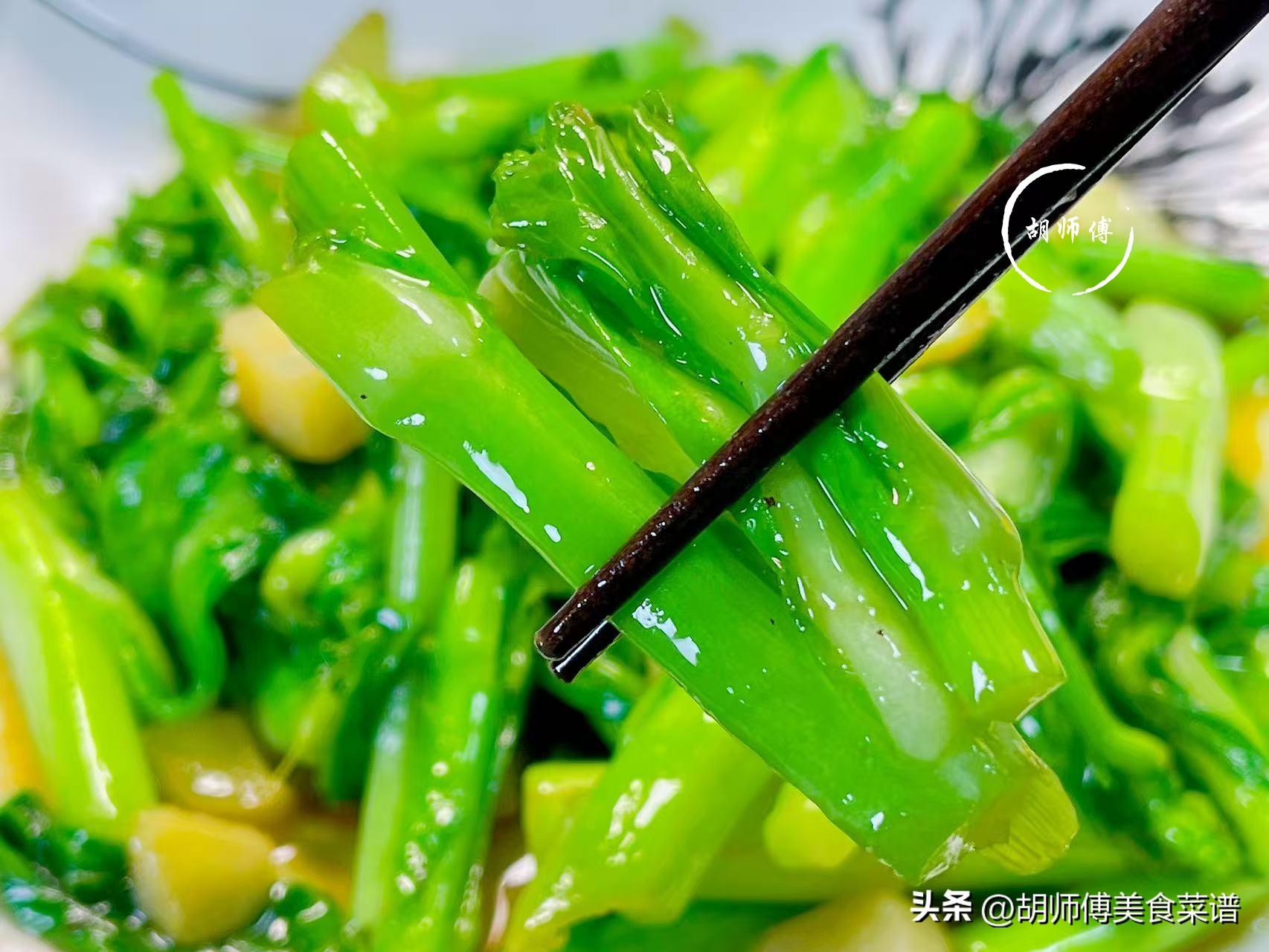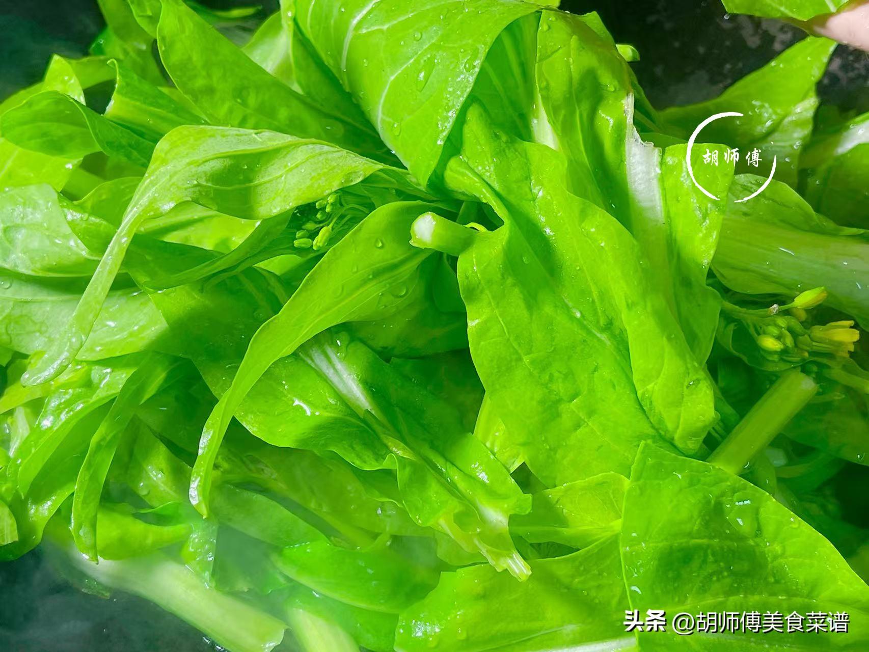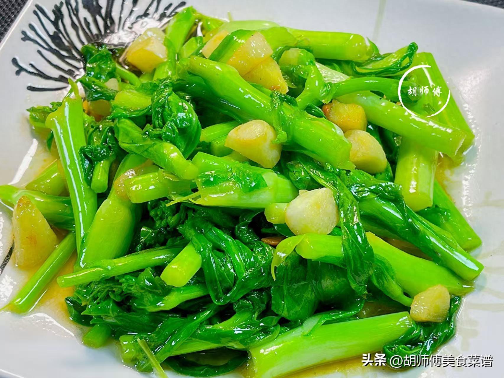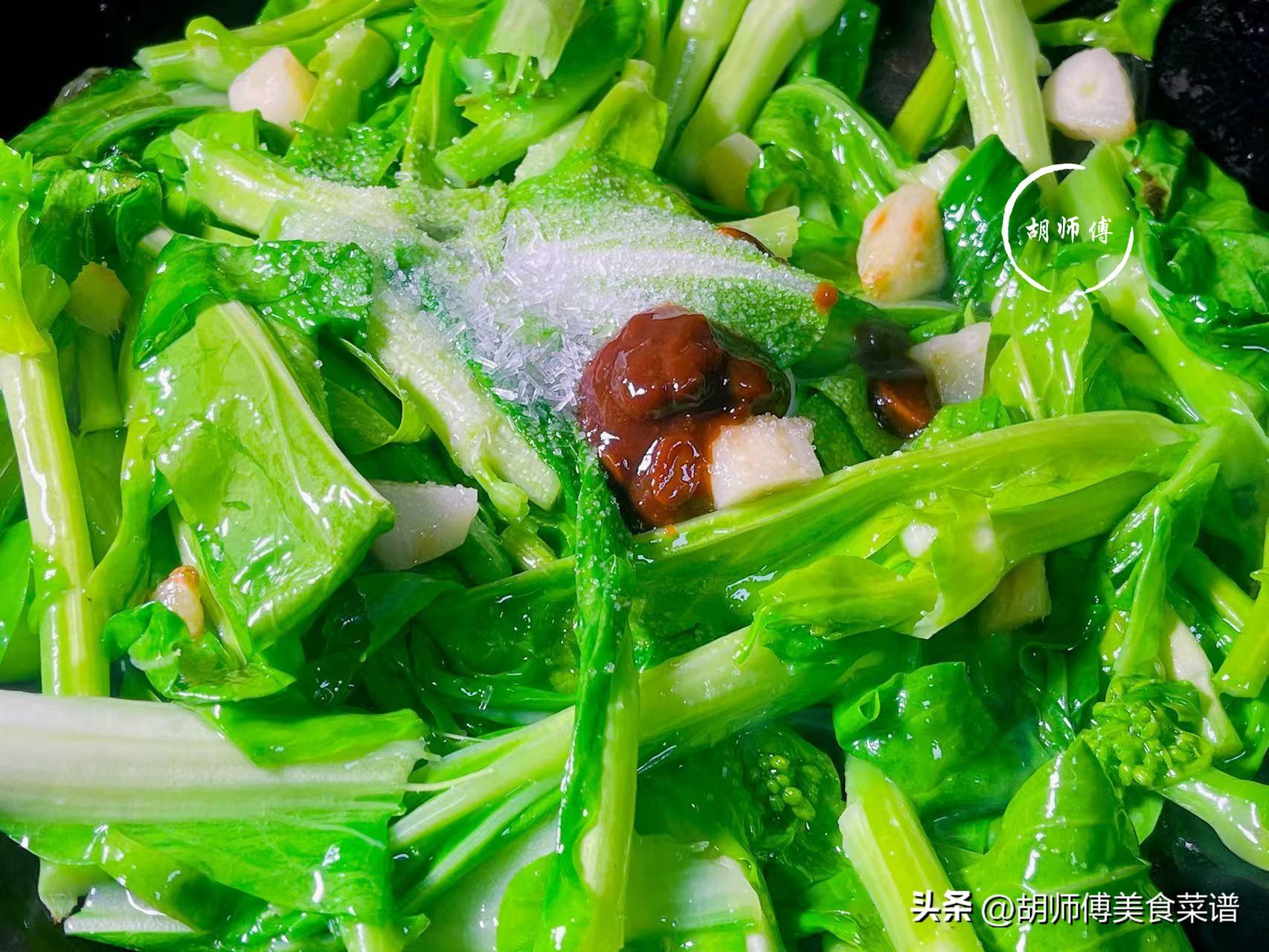 3、家裏爐竈火候比較大時,給白菜薹調味後,一定要點一點水,這樣可以使調料融化,從而使白菜薹喫着更入味。