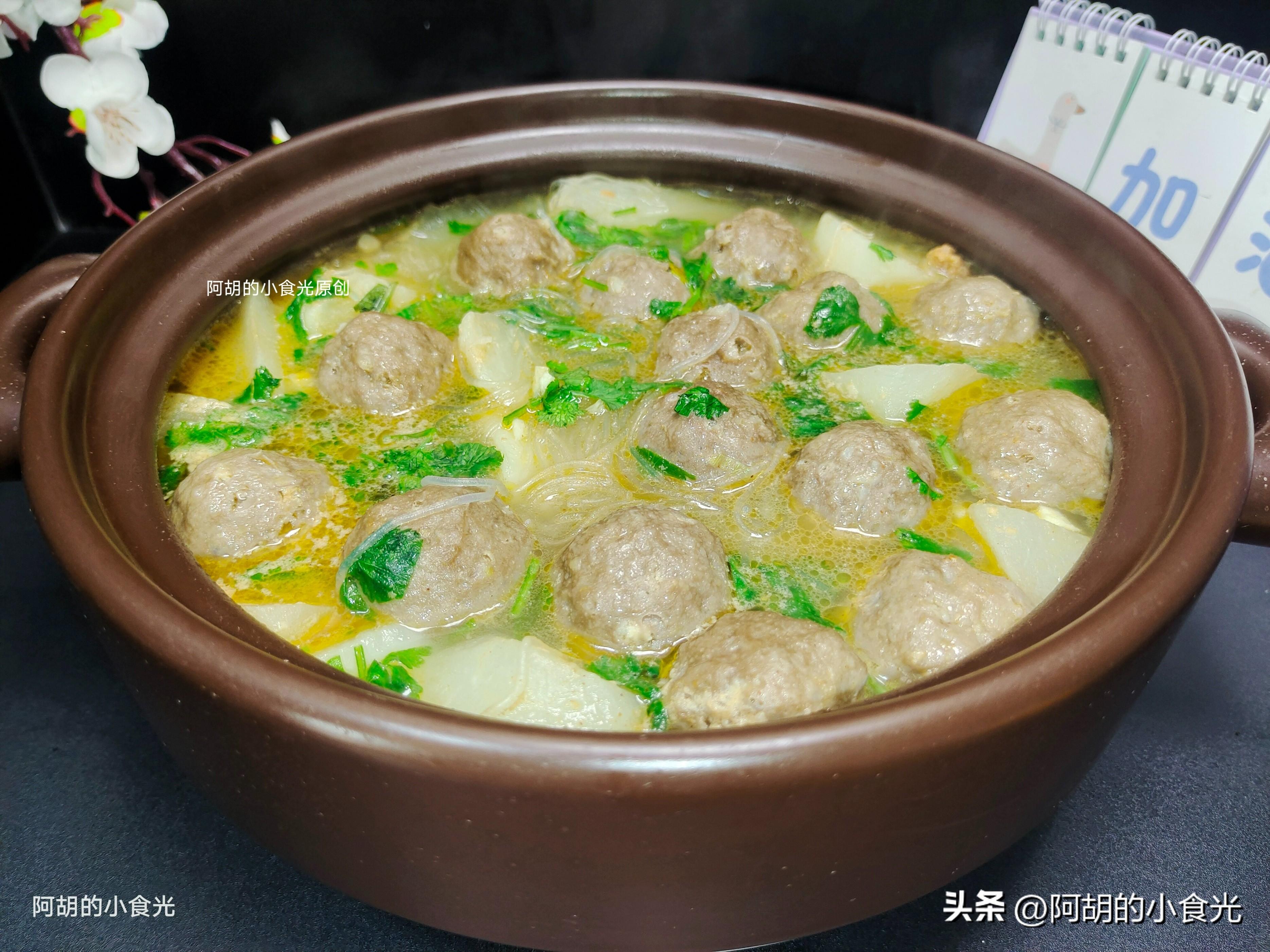 我是阿胡的小食光,一個喜歡研究把普通食材做出更多花樣美食的饕餮小食客!天冷就喜歡這樣的一鍋燉,蘿蔔、牛肉丸、粉絲在沙茶醬的調味下完美搭配,能喝湯能喫菜,熱乎乎的滿口香醇好味道。如無特殊情況,我每天都會按時分享一道家常美食的做法,在此特別感謝您的每一個贊和“小紅心”,明天的內容依舊很精彩,敬請期待!