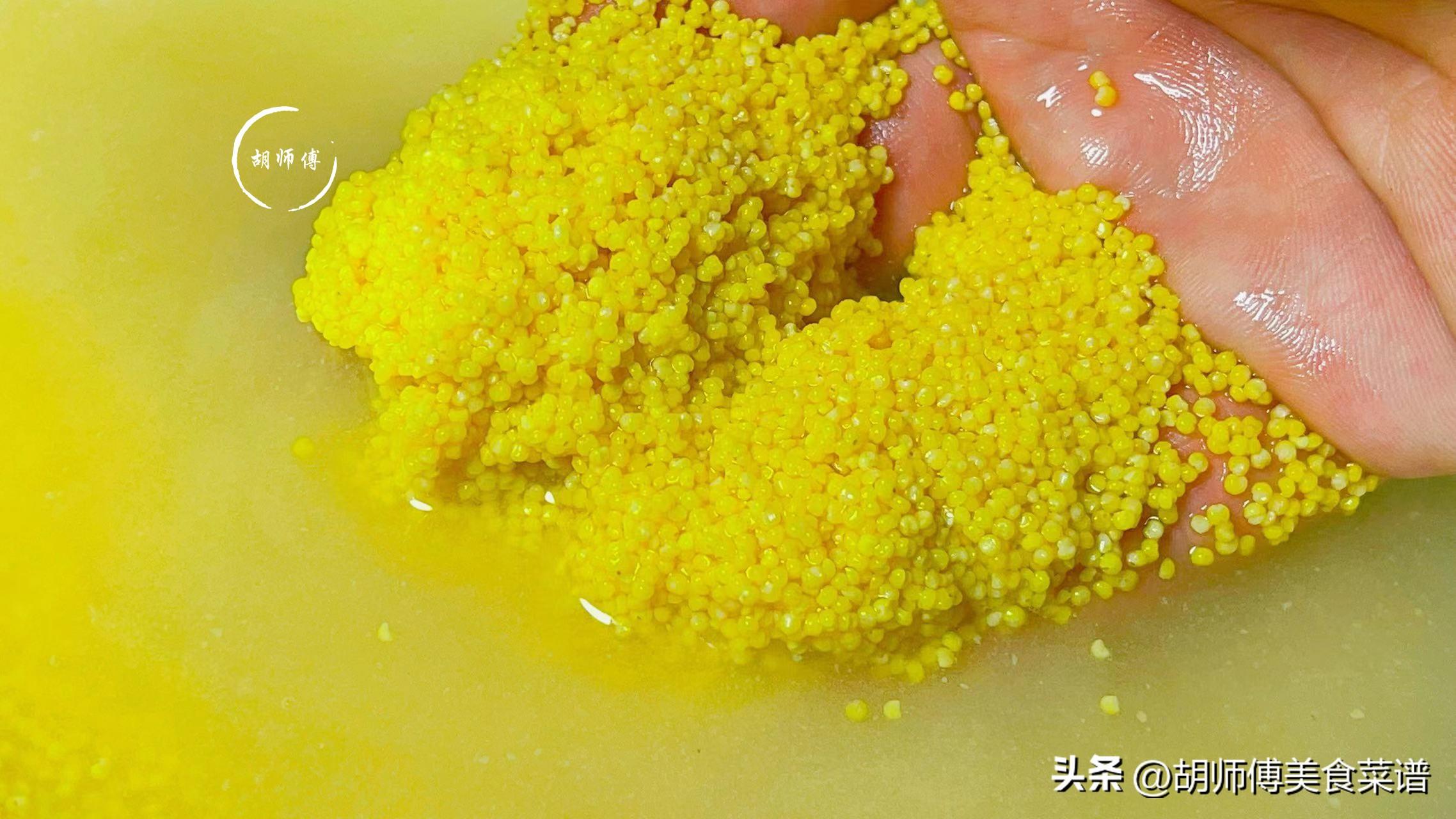第一步:買回家的小米,先將它放入冷水中浸泡5小時左右,直到將小米完全泡脹,然後將小米撈出,再用自來水將小米沖洗乾淨即可備用。
