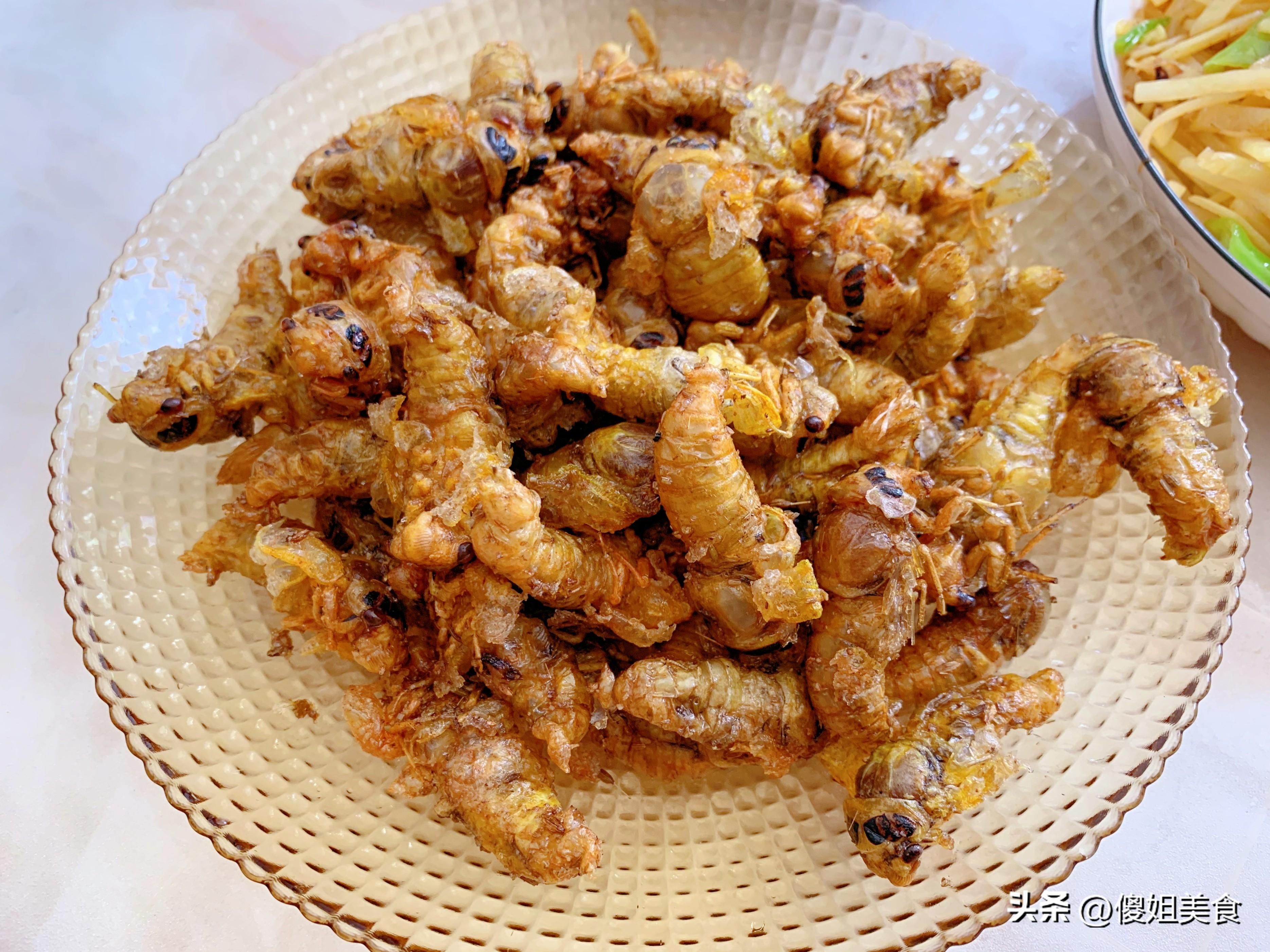 我特別喜歡那種口感,外殼酥酥的,咬下去“咔哧”一聲,裏面卻是嫩的、鮮的。一口一個,根本停不下來。金蟬蛋白質豐富,喫起來特別解饞,是那種很紮實的滿足感。