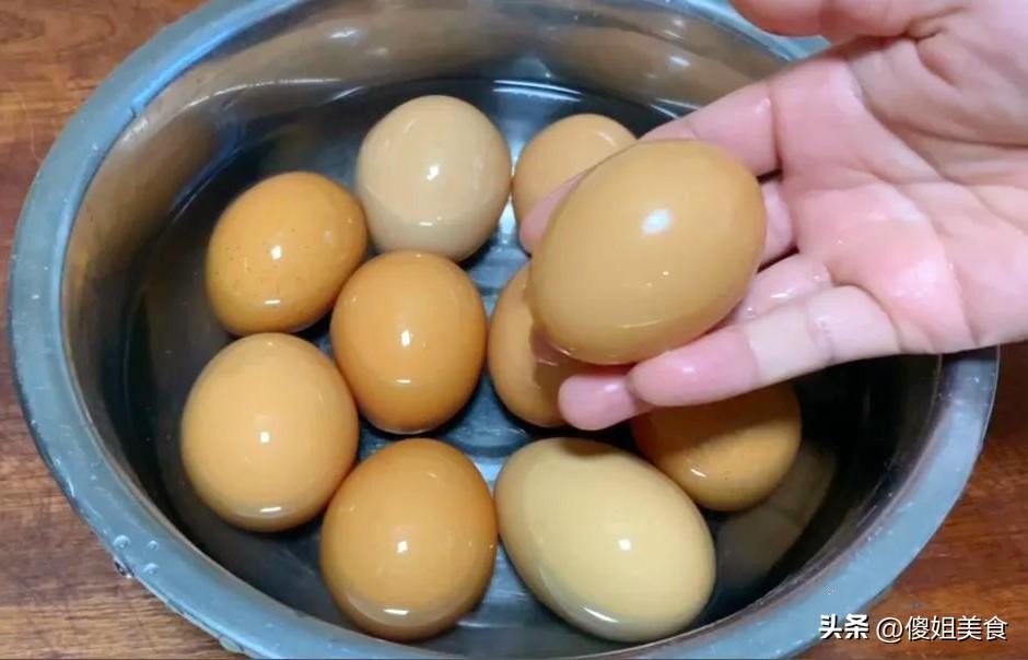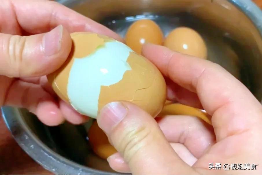 泡個兩三分鐘,就可以撈出來剝殼了。你會聽到蛋殼碎裂的清脆聲,輕輕一撕,一個光溜溜、水嫩嫩的雞蛋就出來了。