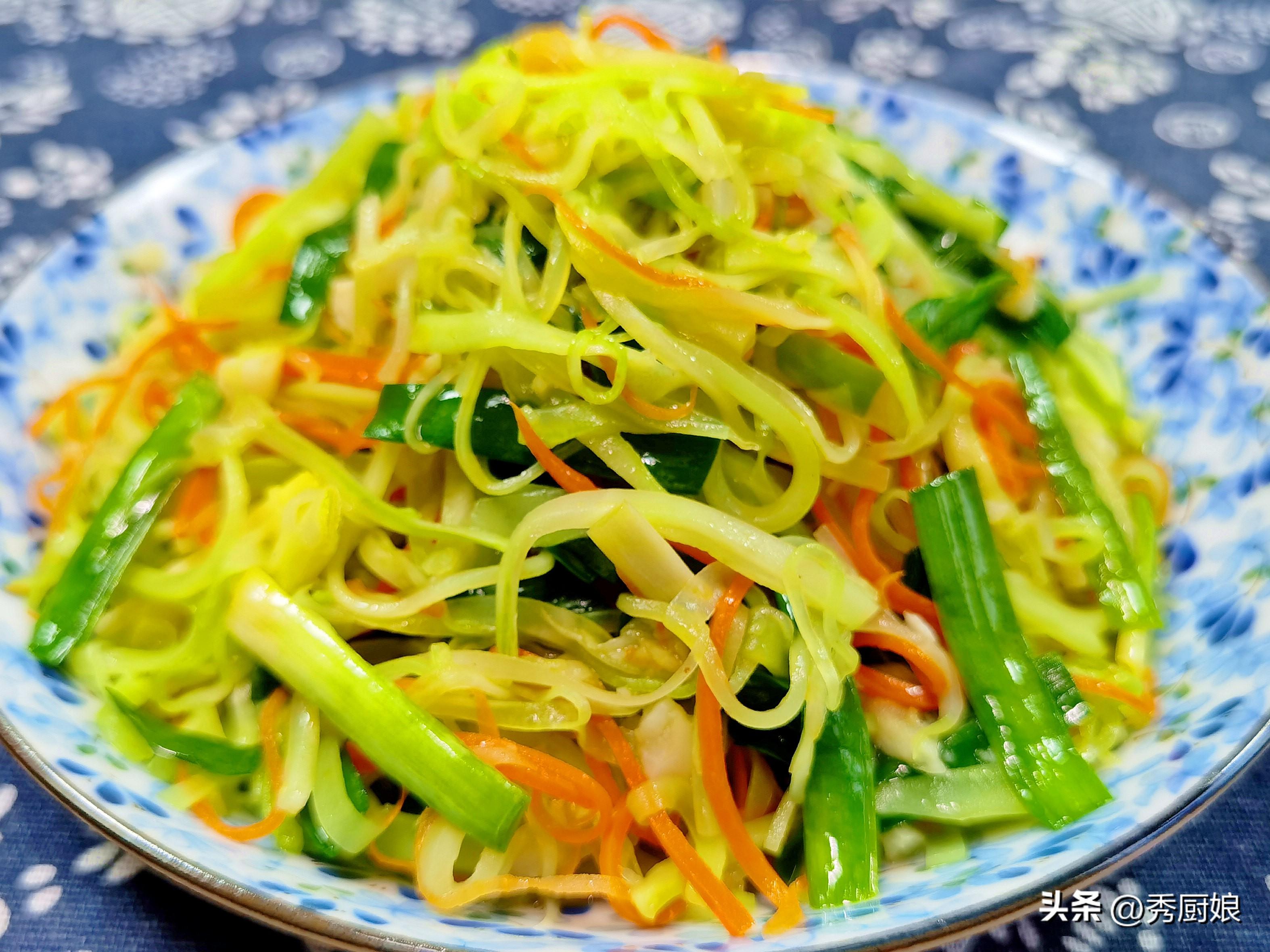 小貼士:兒菜先焯水再炒,更容易熟,且能縮短翻炒時間,保持爽脆。這道菜顏色清新,口感豐富,味道鮮甜中帶一點刺激,特別開胃。